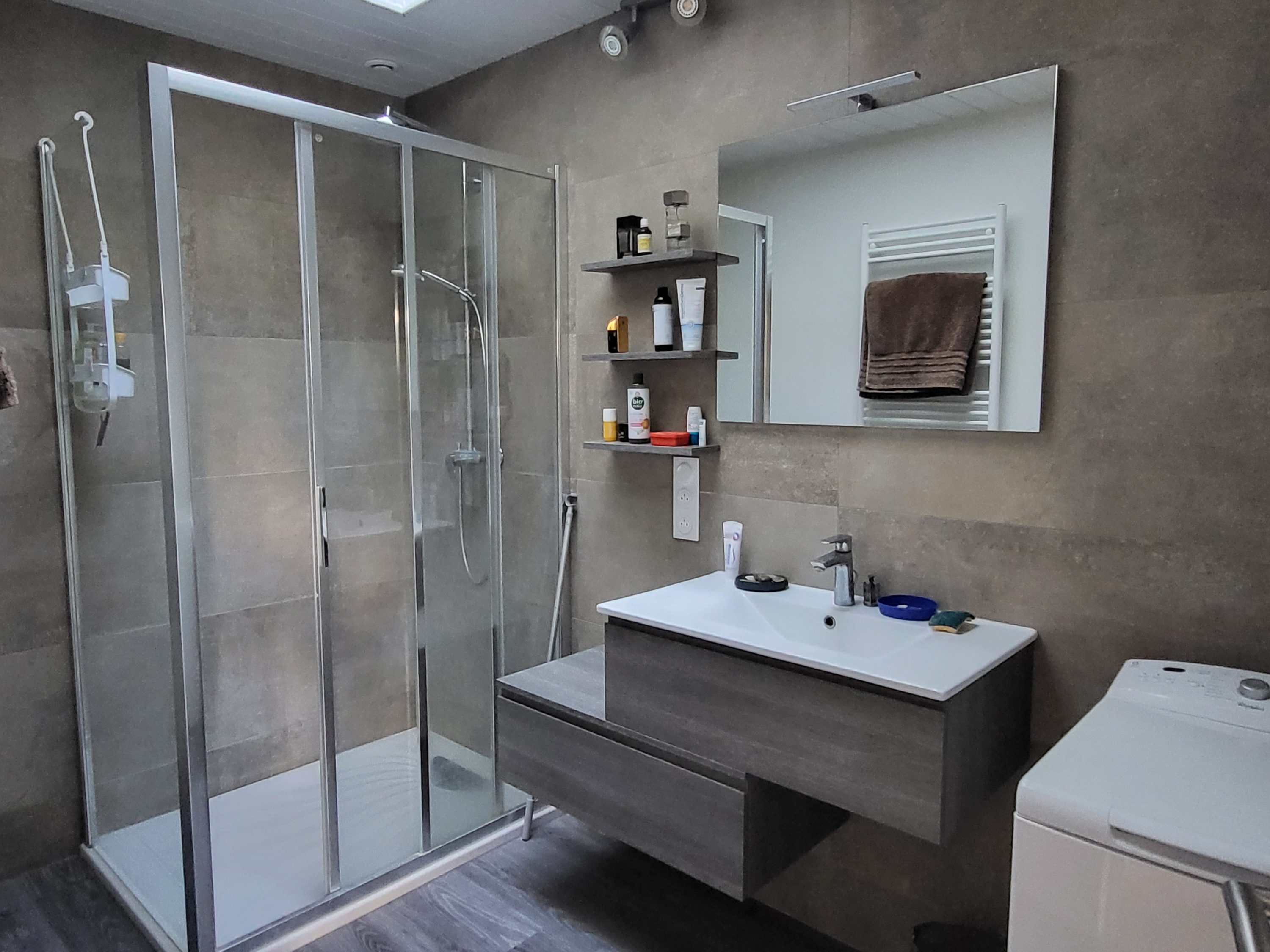 Salon avec cheminée feu de bois insert , salle à manger , grande cuisine équipée , SDB récente.