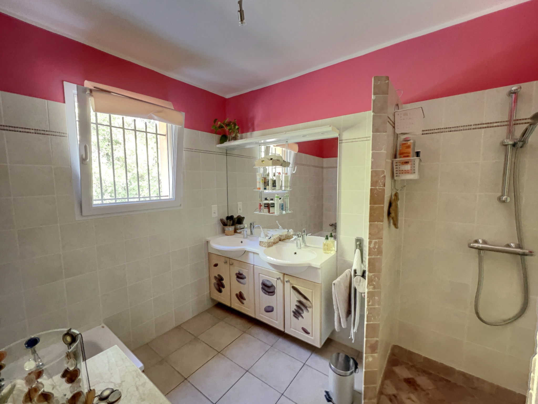 L'espace de vie se compose d'une cuisine séparée, entièrement aménagée, avec un cellier attenant très fonctionnel, d'un séjour lumineux ouvrant sur le jardin, et de trois chambres confortables offrant de beaux volumes. La salle d'eau avec baignoire complète l'ensemble avec une touche de confort appréciable.