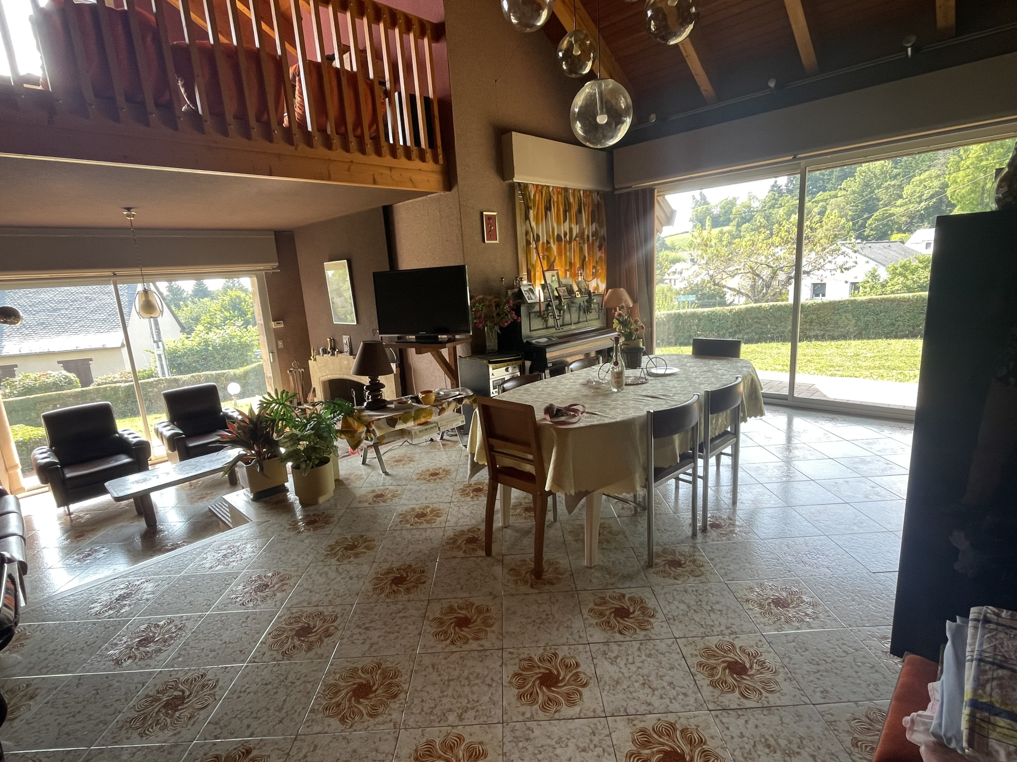 RIEUPEYROUX : Au centre de Rieupeyroux, magnifique villa d'environ 190m2 habitables comprenant en rez de jardin, un séjour cathédrale avec cheminée, une cuisine, 3 chambres, une salle de bain et un wc. deux garages. A l'étage une mezzanine avec balcon, deux chambres, une salle d'eau et un wc. Cette maison offre de très beaux volumes et est lumineuse avec ces grandes baies vitrées. Rare sur le secteur, à visiter sans tarder!