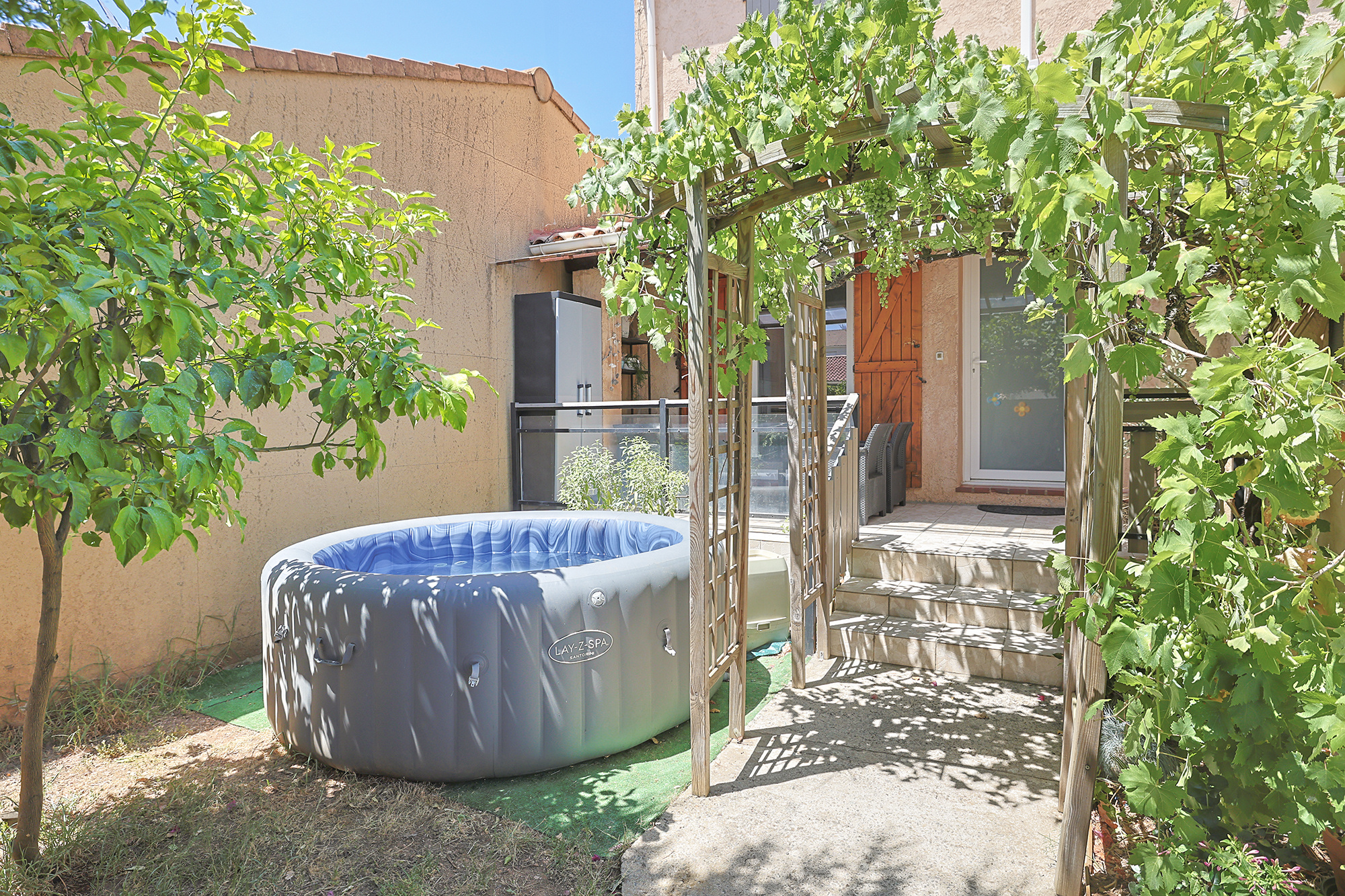 A l'extérieur : Vous trouverez un jardin accessible par le salon mais aussi directement par la cuisine .... idéal pour les repas extérieurs. Côté façade l'espace a été particulièrement bien pensé et très bien aménagé avec une terrasse couverte/salon d'été, un espace idéal jacuzzi (ou piscine hors-sol) sans vis à vis ni promiscuité !