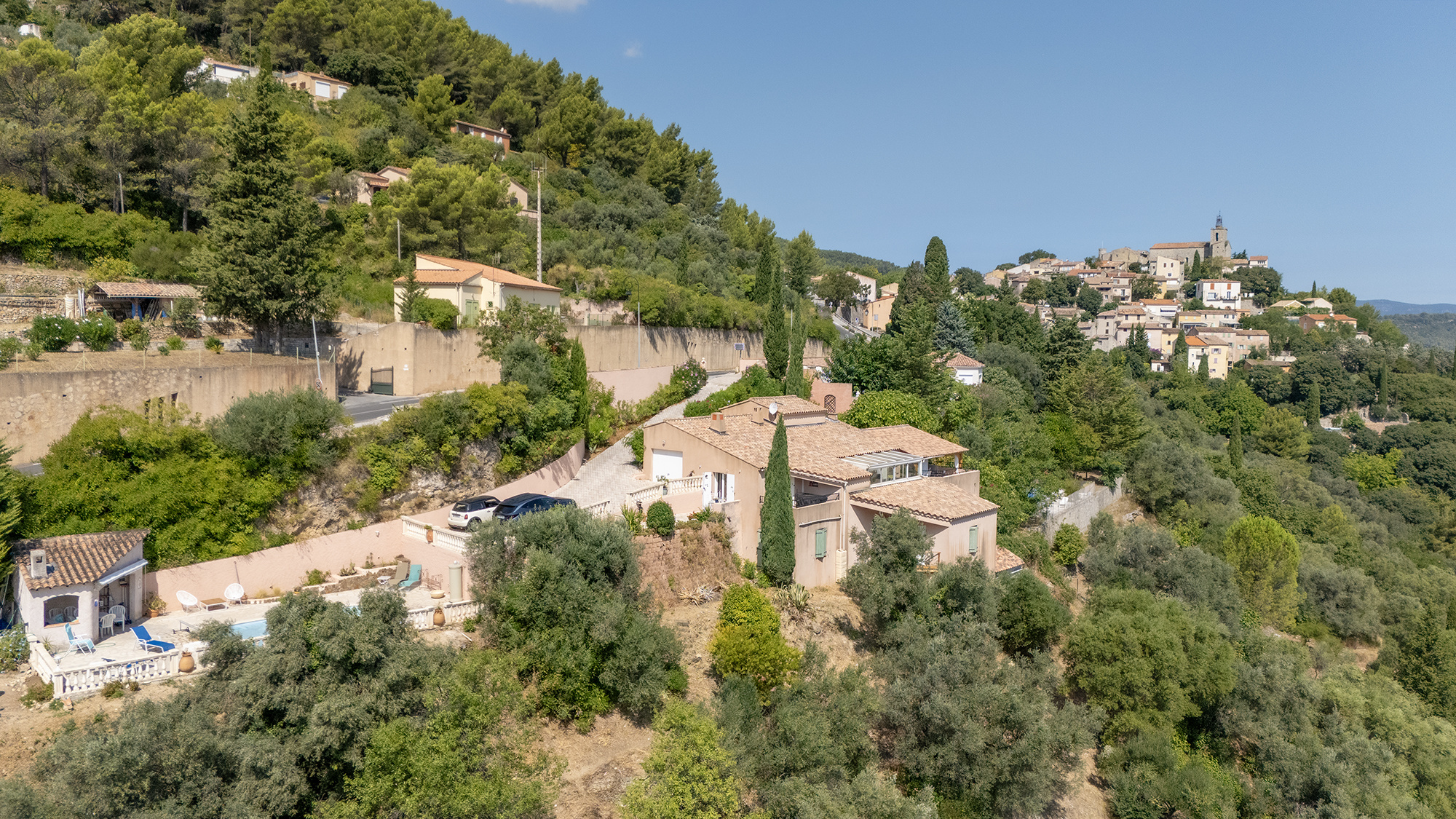 SOLLIES VILLE, JCG Immo est heureux de vous proposer en exclusivité et nulle part ailleurs, cette grande villa familiale de 190 m2 habitables avec piscine, pool house et GARAGE avec une fantastique vue dominante imprenable à 180o qui domine toute la plaine des sollies !