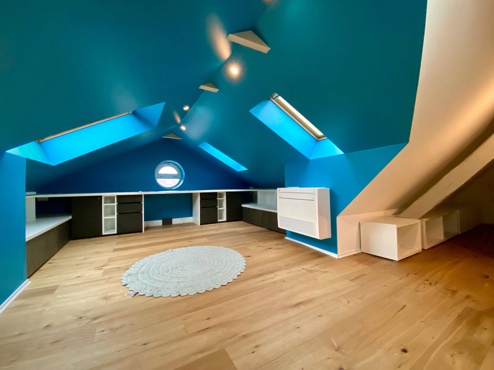 * dans les combles, un bureau et/ou une chambre supplémentaire avec climatisation réversible.