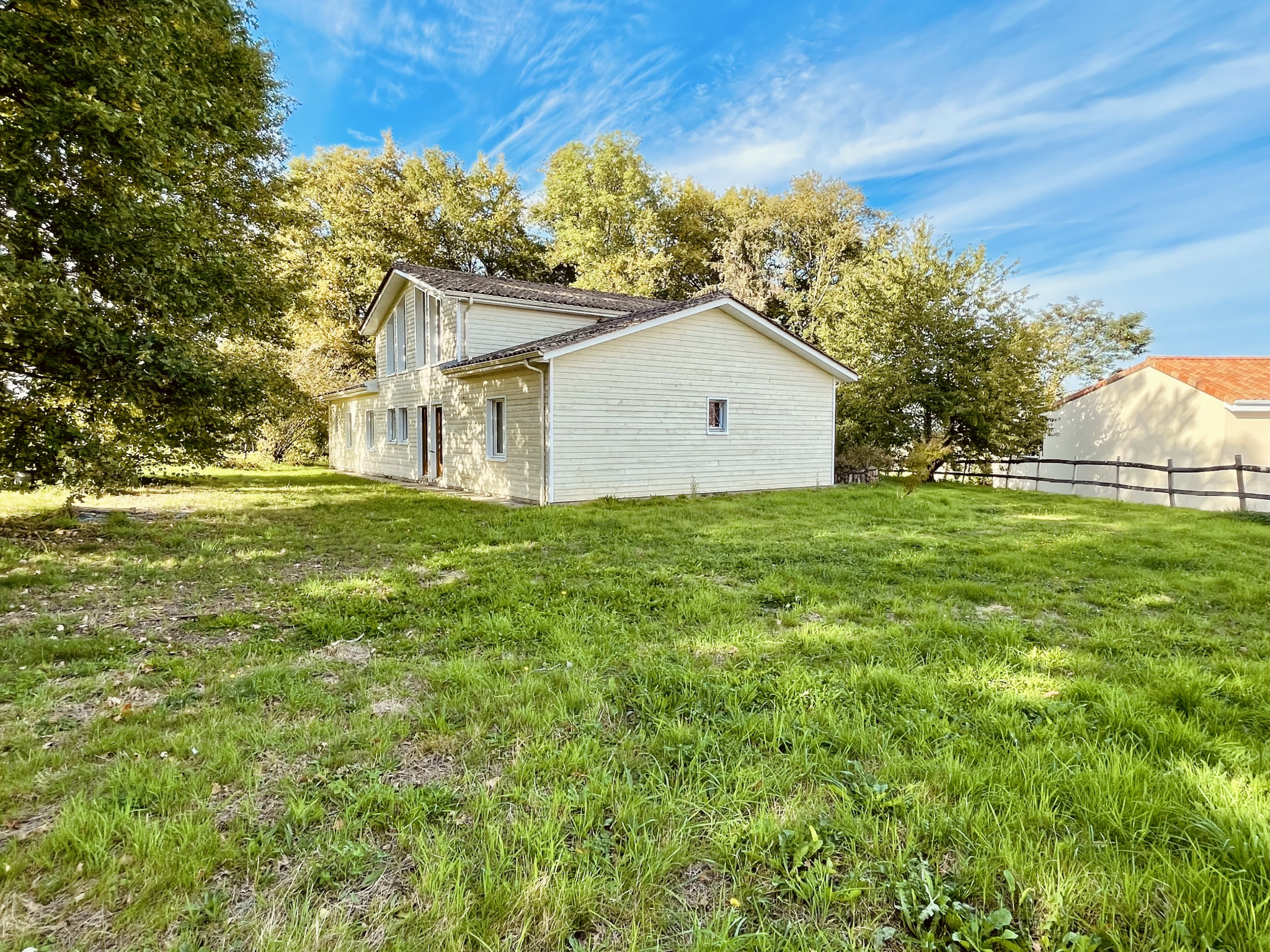 REF. 34893 : 194 400 euros HAI, Lessac (16), proche Confolens tous commerces, en campagne, au calme maison contemporain de 2007/2008 indépendante sur 1ha 24 env., à usage d'habitation, 157 m2 utilisable, composée au rez de chaussée : entrée, une pièce de vie : cuisine équipée/séjour, dégagement avec accès comble, 4 chambres dont une avec dressing et salle d'eau/wc avec baignoire, cabinet de toilette, salle d'eau/wc. Plancher chauffant géothermie, fosse toutes eaux. Garage de 41 m2 avec wc, terrain plus bois attenants non clos, petit étang de 2000 m2 env, le tout sur 12 480 m2.