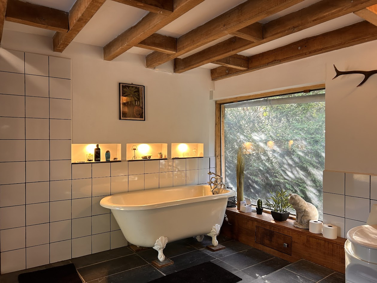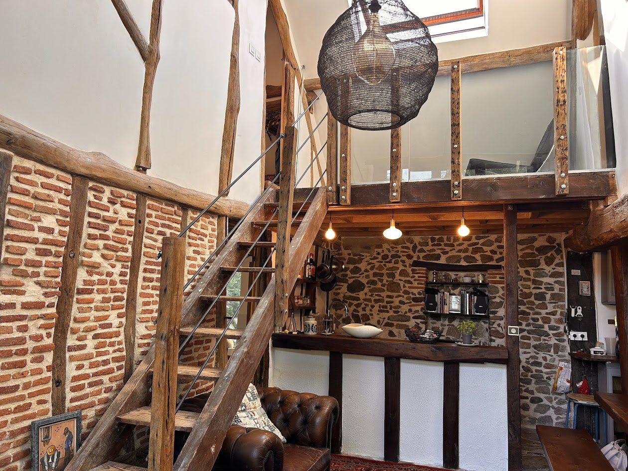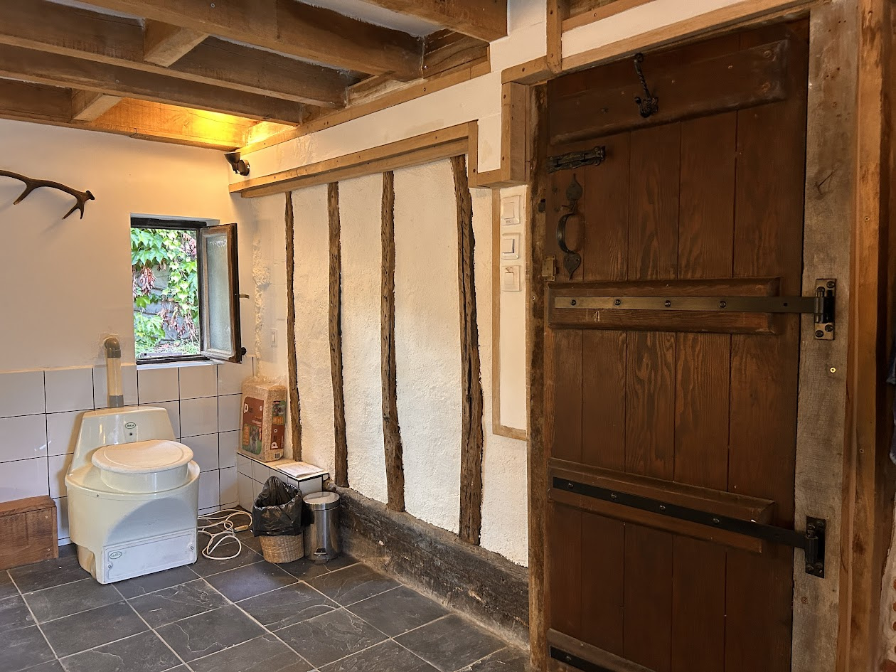 Au rez-de-chaussée vous retrouverez un séjour avec coin cuisine, une salle d'eau avec toilettes sèches, une buanderie.