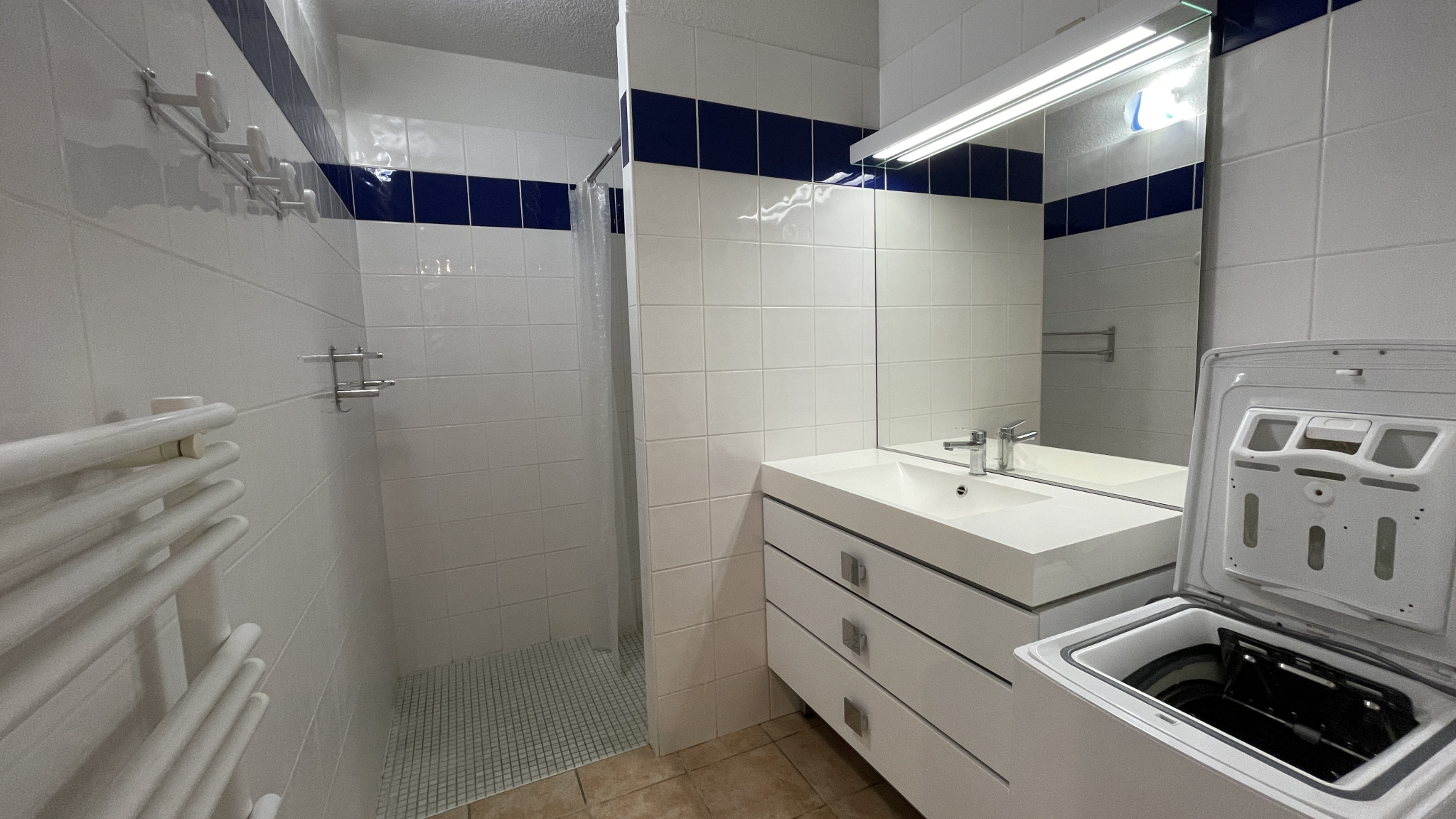 D'une surface d'environ 73 m2 elle est composée, d'une cuisine équipée, séparée, d'un salon/séjour climatisé ouvrant sur une véranda, de deux chambres dont une avec placard, d'un dégagement avec dressing et placard, d'une salle d'eau avec douche à l'italienne et d'un WC avec lave main.. Un cellier complète ce bien.