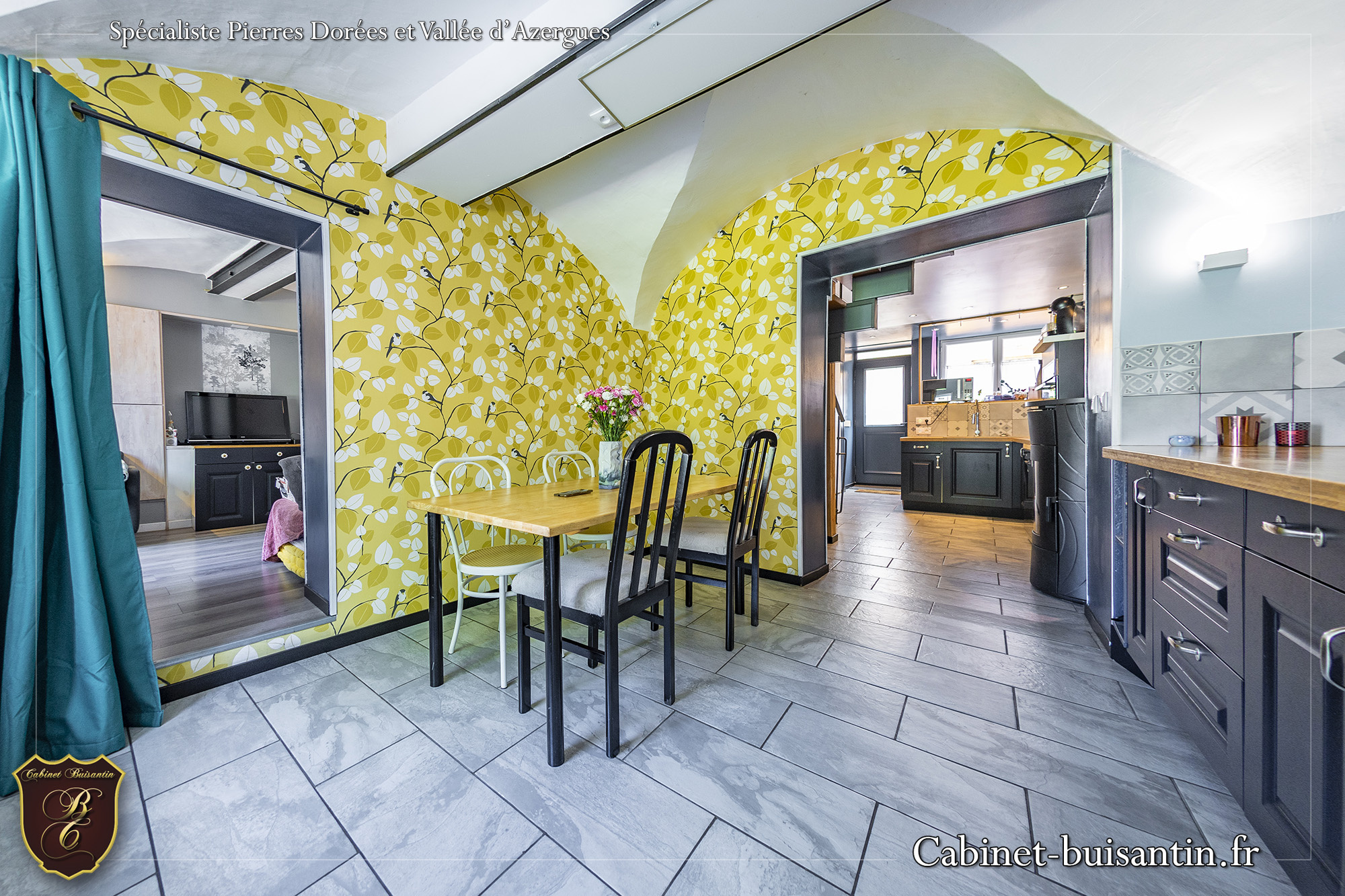 EXCLUSIVITE - LE BOIS D'OINGT - Idéalement située au coeur du village, dans un environnement calme. Maison en pierres d'environ 140 m2 habitables. Elle comprend au rez-de-chaussée : entrée avec cuisine équipée, séjour, salon voutée donnant accès au terrain de 215 m2 clos de murs, a l'abri des regards. On retrouve également au rez de chaussée une pièce à aménager au gré de vos envies (chambre, Bureau/cabinet pour recevoir, atelier....), . Au 1er étage, un deuxième salon avec cheminée, chambre avec dressing, vaste salle de bains, wc. Au dernier étage: 3 chambres, wc avec point d'eau. Maison en parfait état, lumineuse elle est idéale pour une vie de famille grâce à la proximité de toutes les commodités.