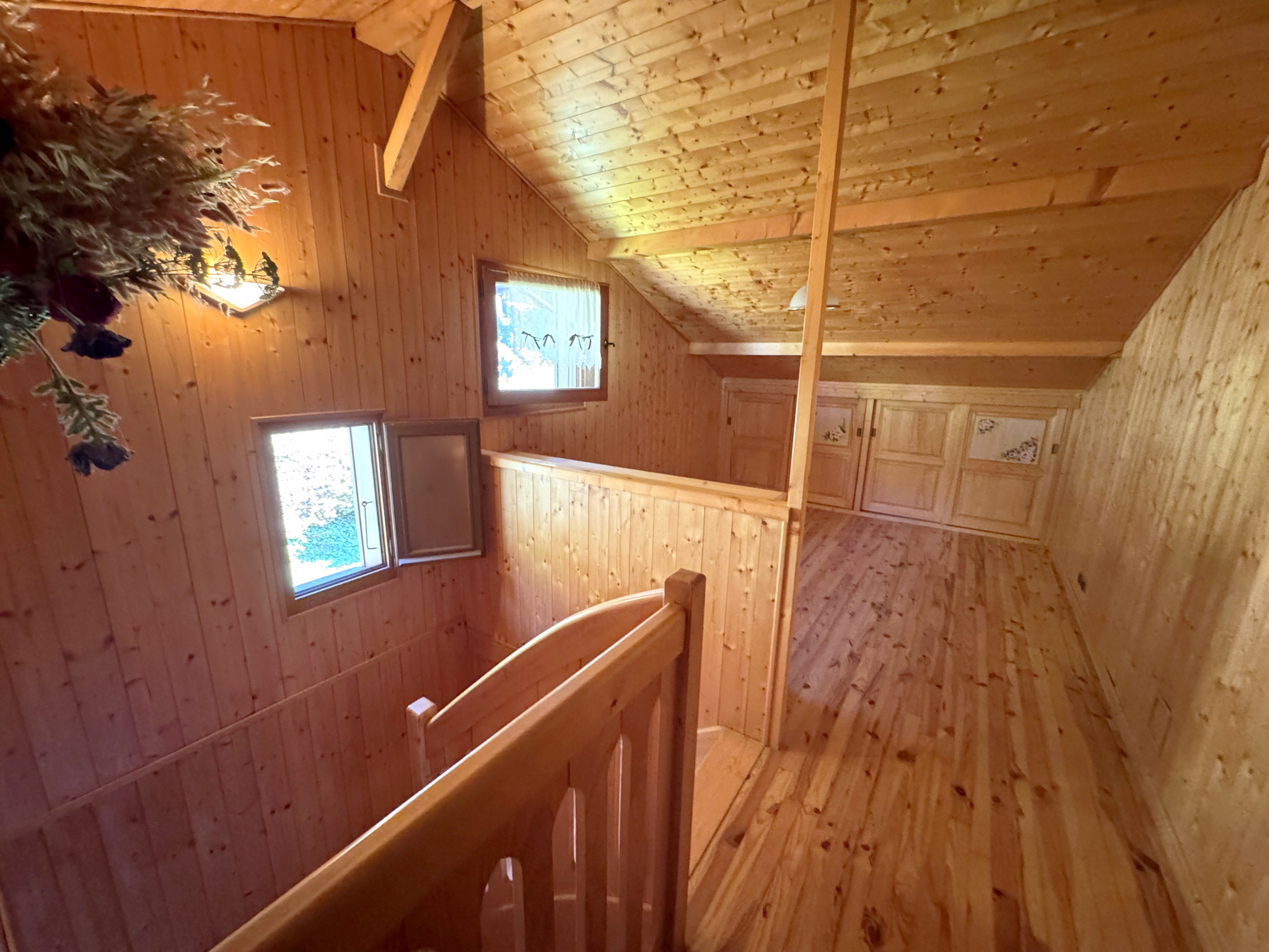 L'étage supérieur offre une belle mezzanine, pouvant être réaménagée en chambre supplémentaire, ainsi que deux chambres donnant accès à un second balcon et un WC avec lave-mains et placard de rangement.