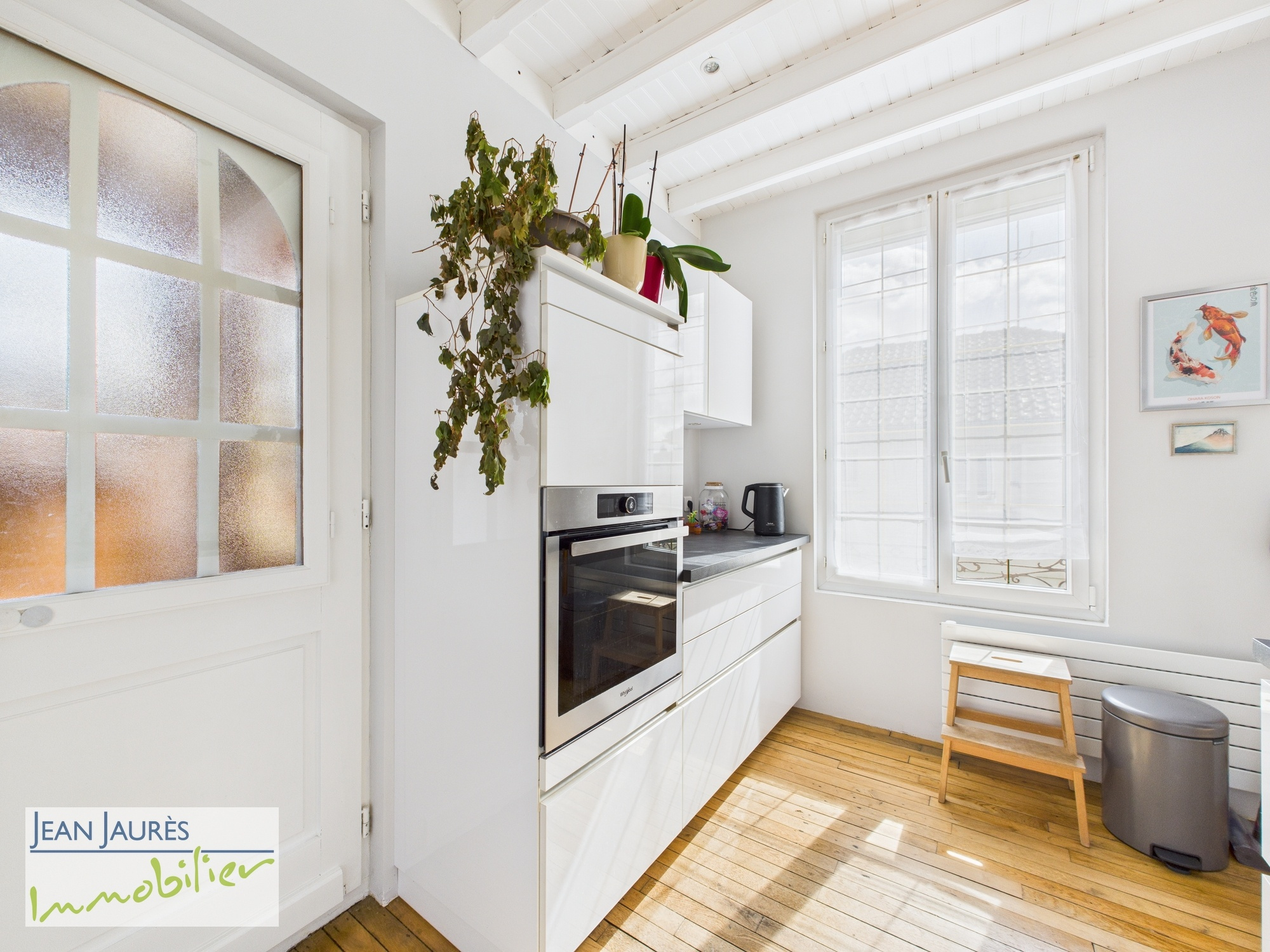 Elle offre 85 m2 sur 3 niveaux, avec 4 chambres spacieuses, un séjour lumineux, une cuisine équipée, une salle de bain avec douche à l'italienne et baignoire, deux WC, un dressing ainsi que de magnifiques parquets et plafonds d'époques.