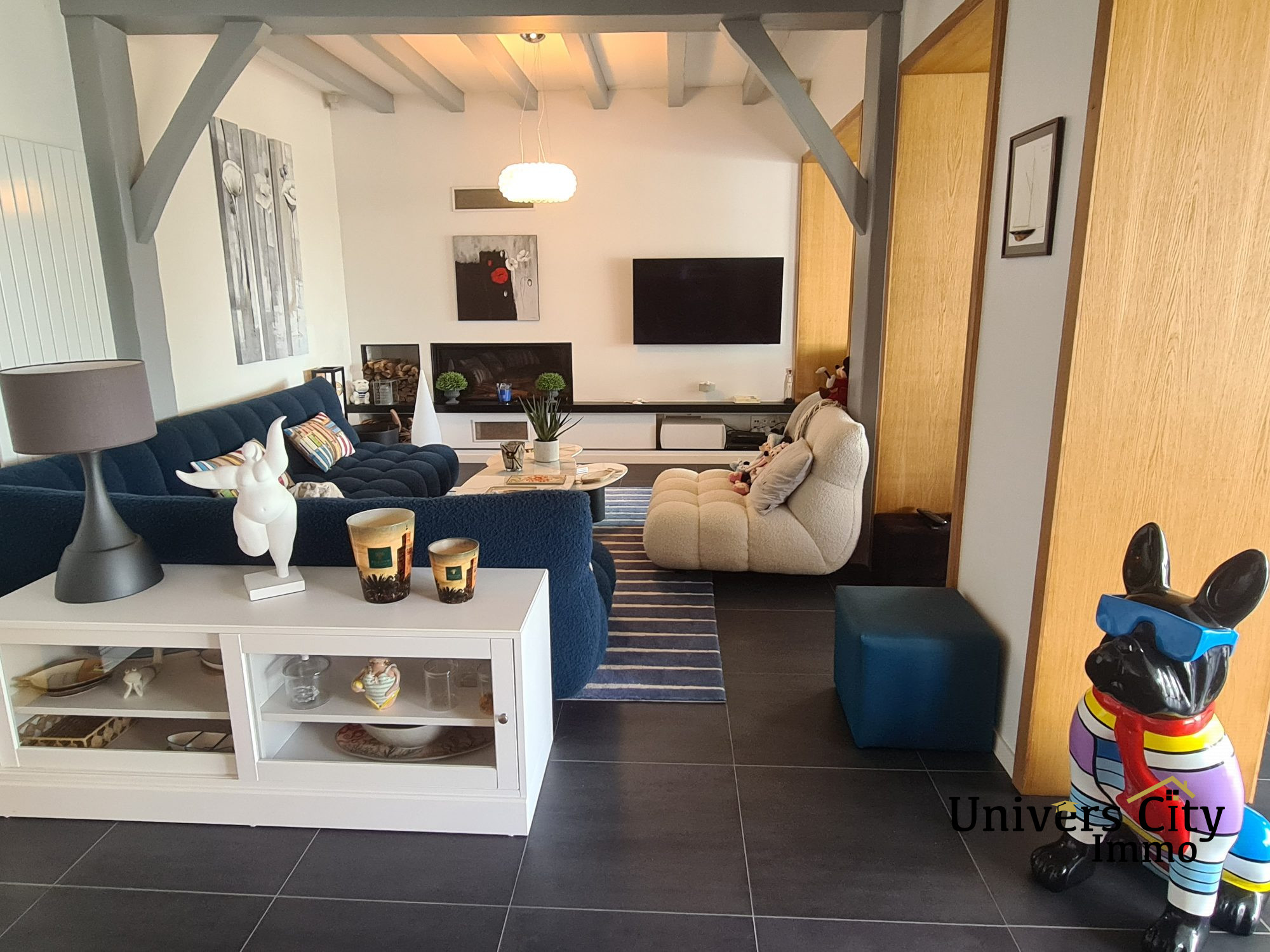Très belle pièce de vie lumineuse salon-salle à manger avec cuisine ouverte toute équipée, l'ensemble d'une surface environ 75 m2 donnant sur terrasse avec