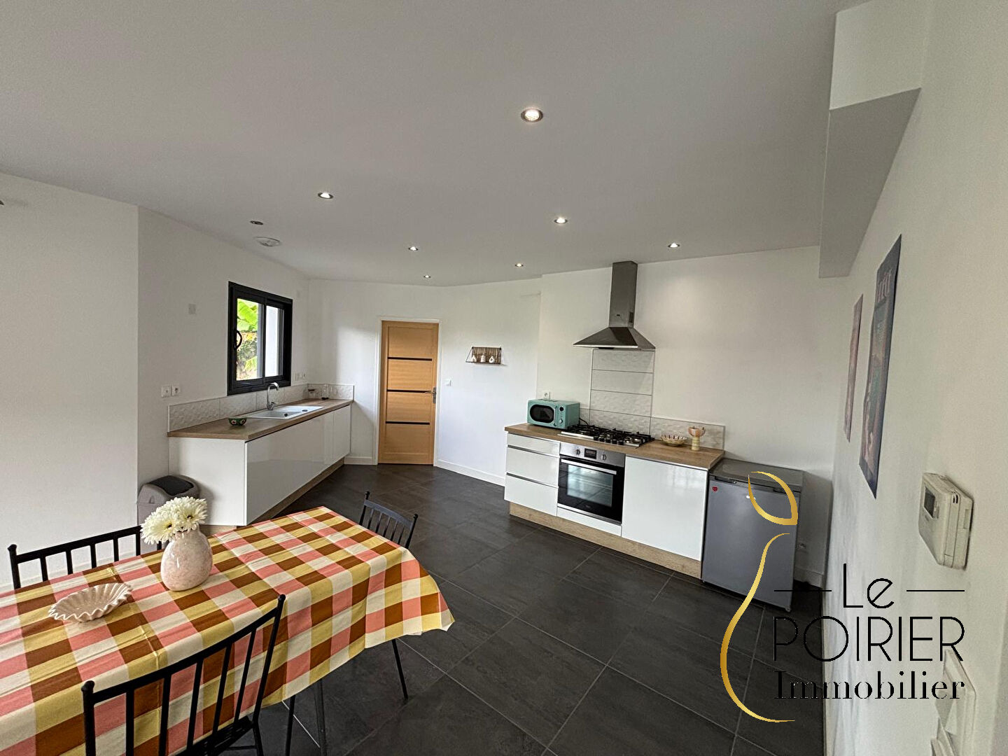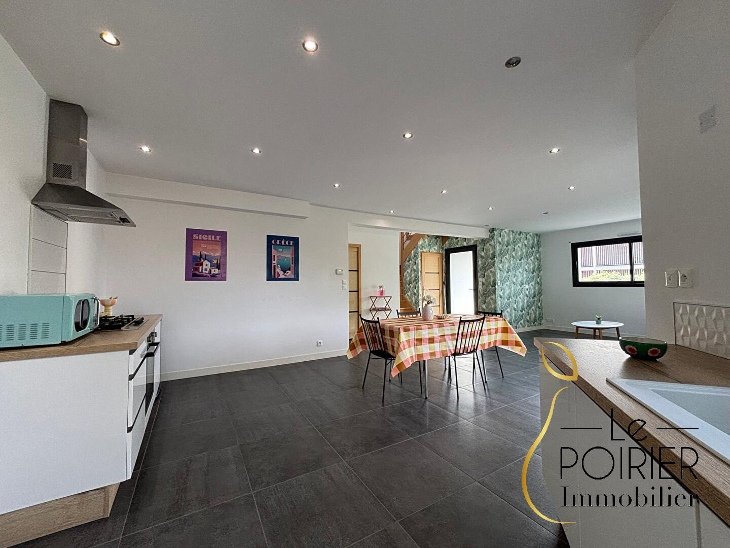 7564 : LAMBALLE : Centre ville à pied pour cette maison d'architecte avec vie de plain-pied lumineuse bénéficiant d'un bel espace de vie de plus de 40 m² avec cuisine ouverte, aménagée et équipée, une suite parentale, arrière cuisine, WC séparé avec lave mains.