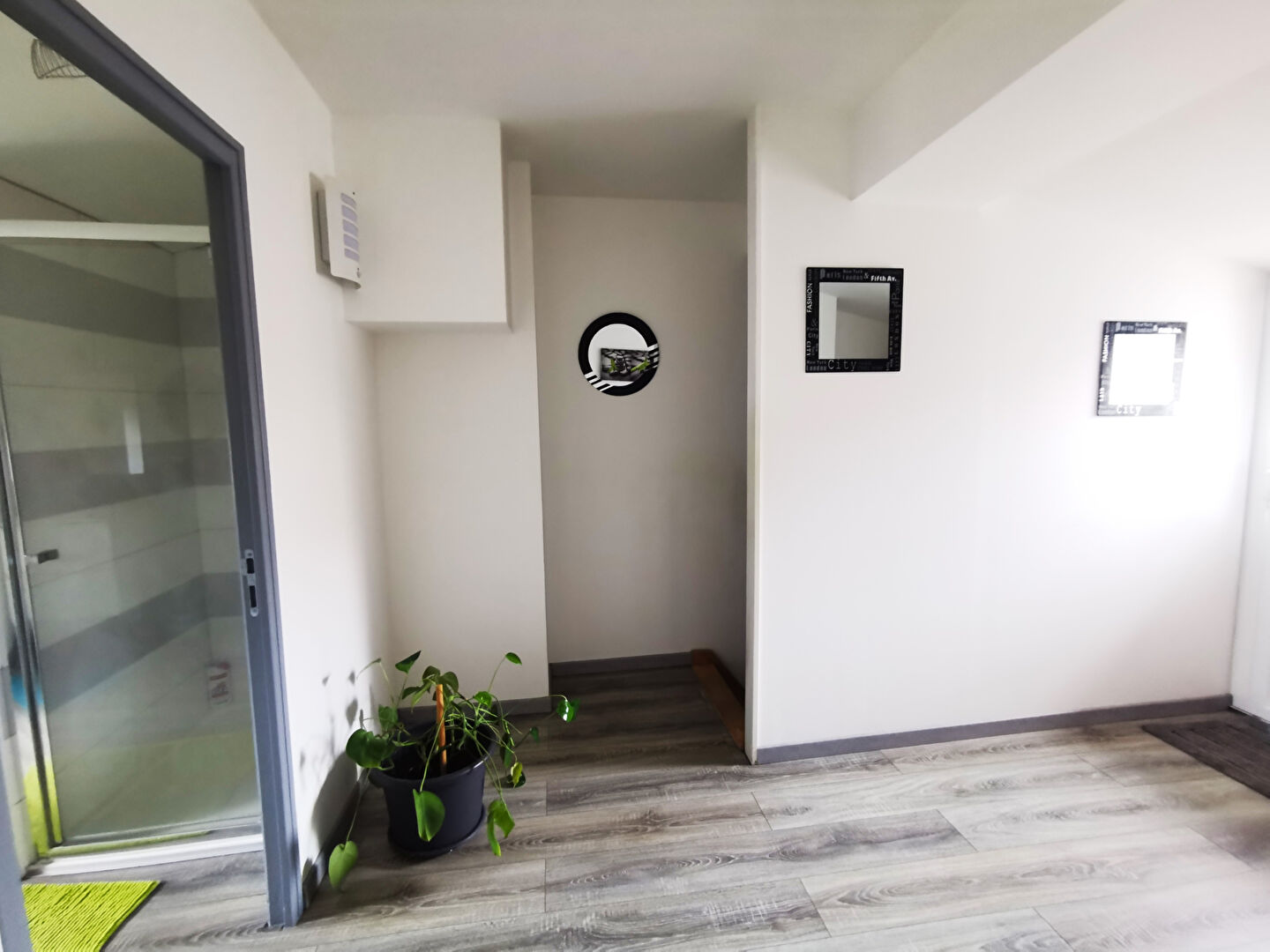 Un espace de vie avec cuisine ouverte d'environ 60 m², agrémenté de son poêle à granulés, une buanderie ainsi qu'un dégagement qui dessert une suite parentale comprenant une salle de bains avec douche à l'italienne, un dressing et un W.C, le tout représentant 40 m².