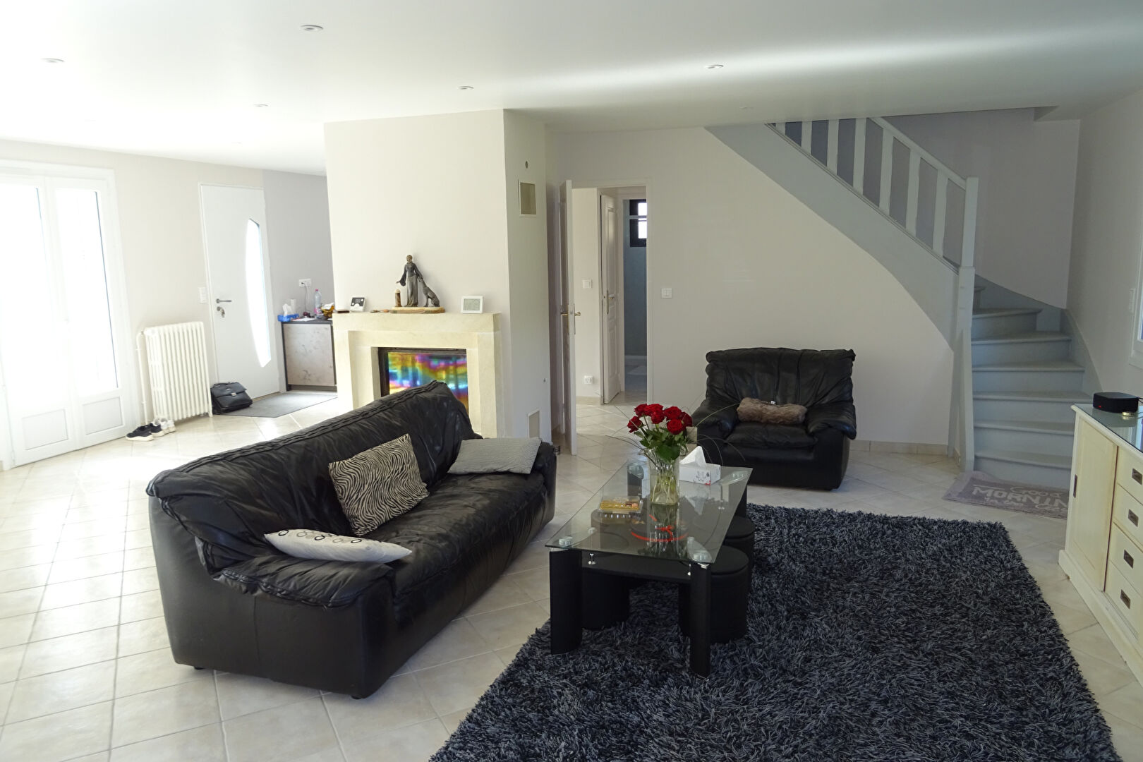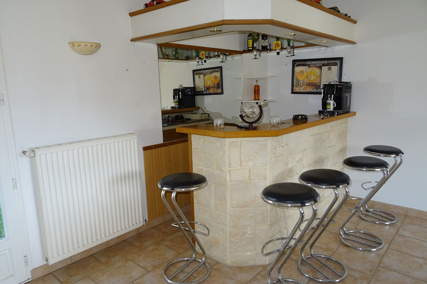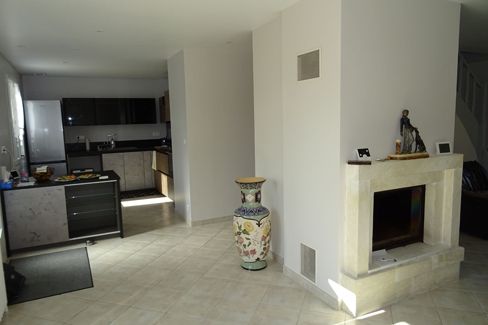 Maison très lumineuse édifiée sur sous-sol offrant : entrée, cuisine aménagée récente équipée ouverte sur vaste séjour avec cheminée insert, salle de jeux avec bar, chambre, sde, wc. A l'étage : pièce palière, 2 chambres, sde + wc. Chauffage par pompe à chaleur récente.