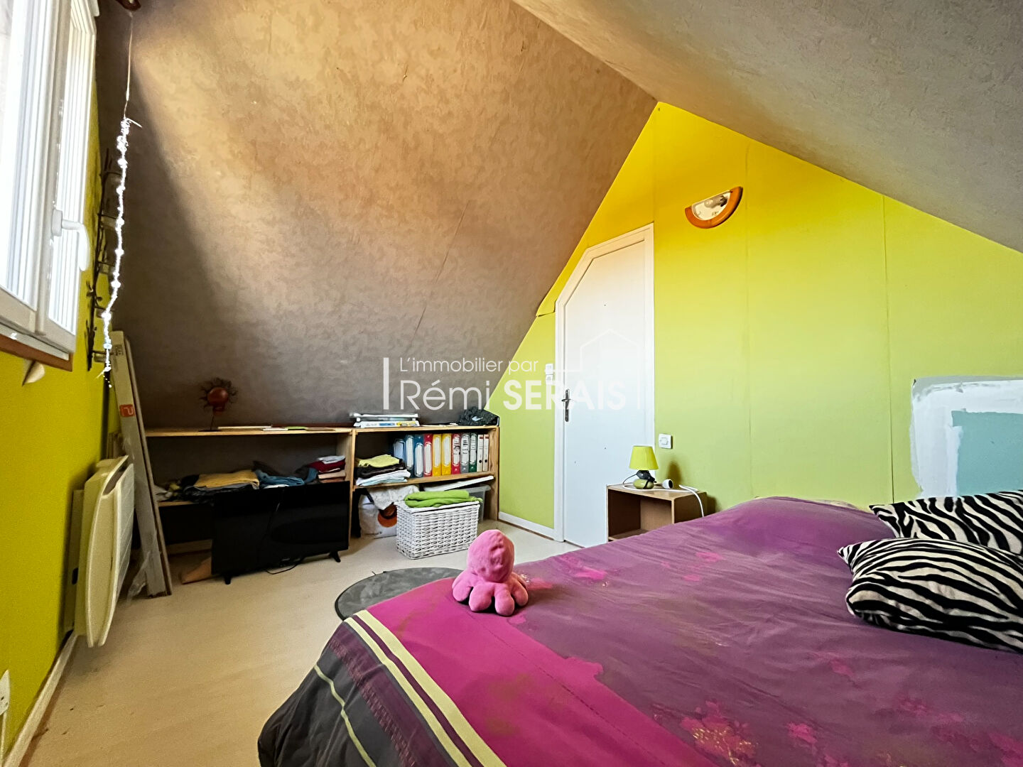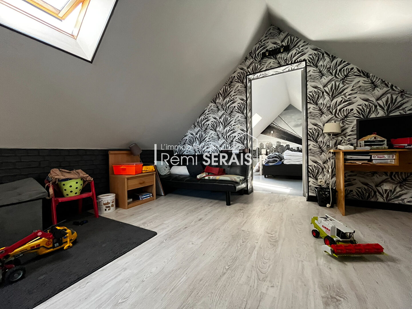 Une pièce mansardée idéale pour accueillir une chambre d'amis ou un espace de jeu.