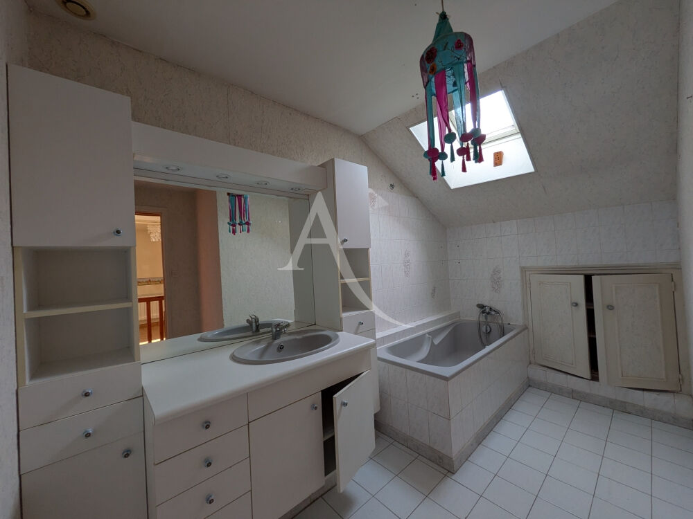 A l'étage : palier mezzanine desservant, deux chambres, salle de bains et toilettes séparés.