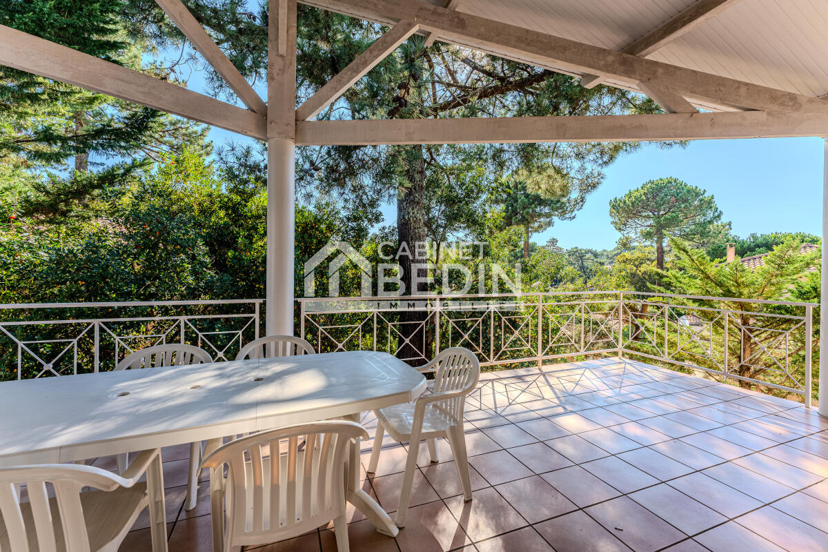 Exclusivité CABINET BEDIN - ARCACHON - QUARTIER CALME DES ABATILLES. Dans le très recherché quartier des Abatilles, au c?ur d?une magnifique pinède et à proximité immédiate des plages du Bassin, cette maison d?architecte réalisée en 1998 séduit par son emplacement idéal et la qualité de sa construction. Située dans un environnement résidentiel calme et verdoyant, elle permet de rejoindre aisément la plage Pereire, le centre d?Arcachon ou encore les commerces de proximité, offrant un cadre de vie rare et privilégié.