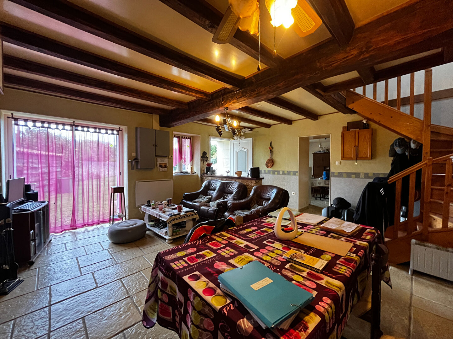Au rez-de-chaussée, vous trouverez un séjour équipé d'un insert avec soufflerie, permettant de diffuser la chaleur dans les autres pièces, une cuisine , une salle de bains avec douche également ainsi qu'un WC indépendant.