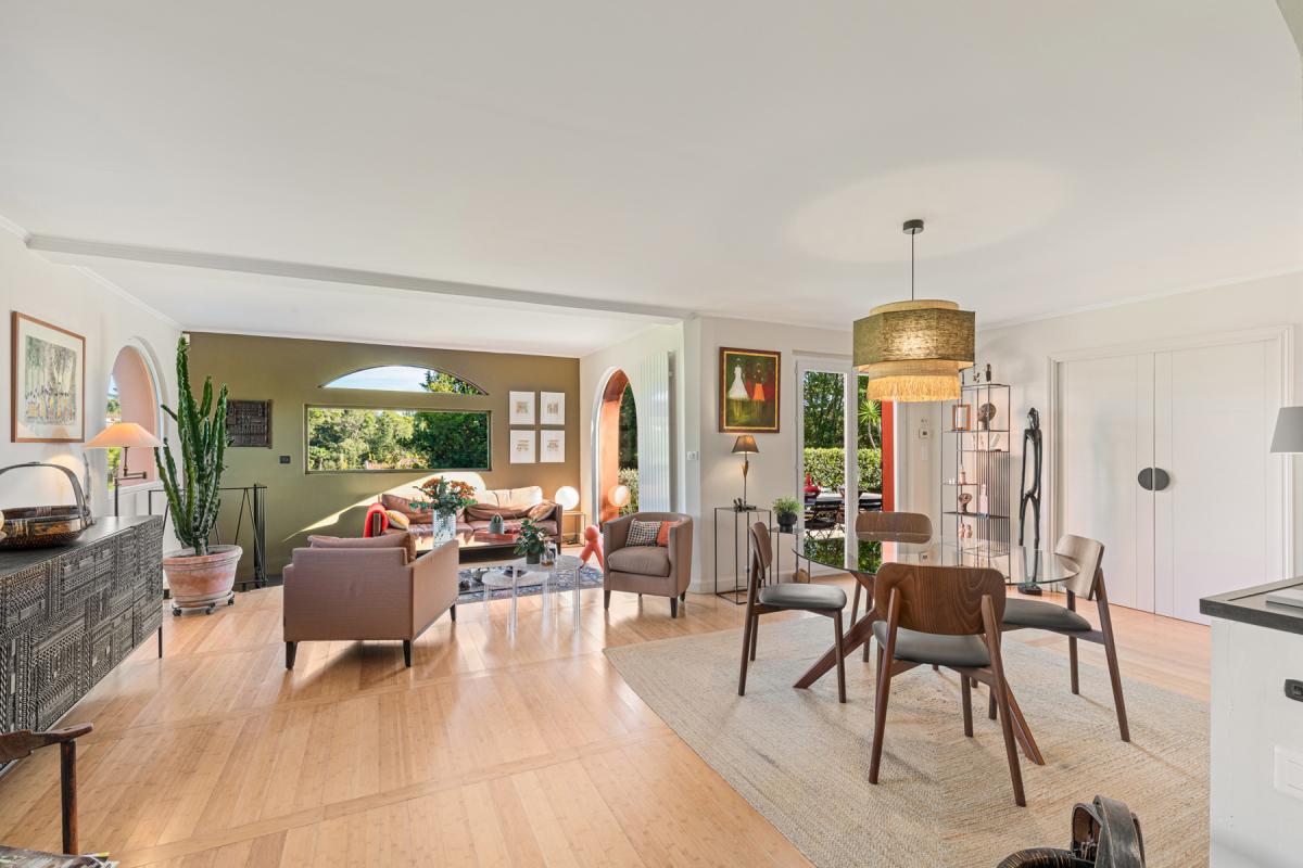 Cette espace de vie bénéficie de grandes ouvertures de baies vitrées qui s'ouvrent sur diffférentes terrasses et sur le jardin de toute beauté tres paysager qui vient agrémenter l'espace piscine , un veritable havre de paix dans un ecrin de verdure.