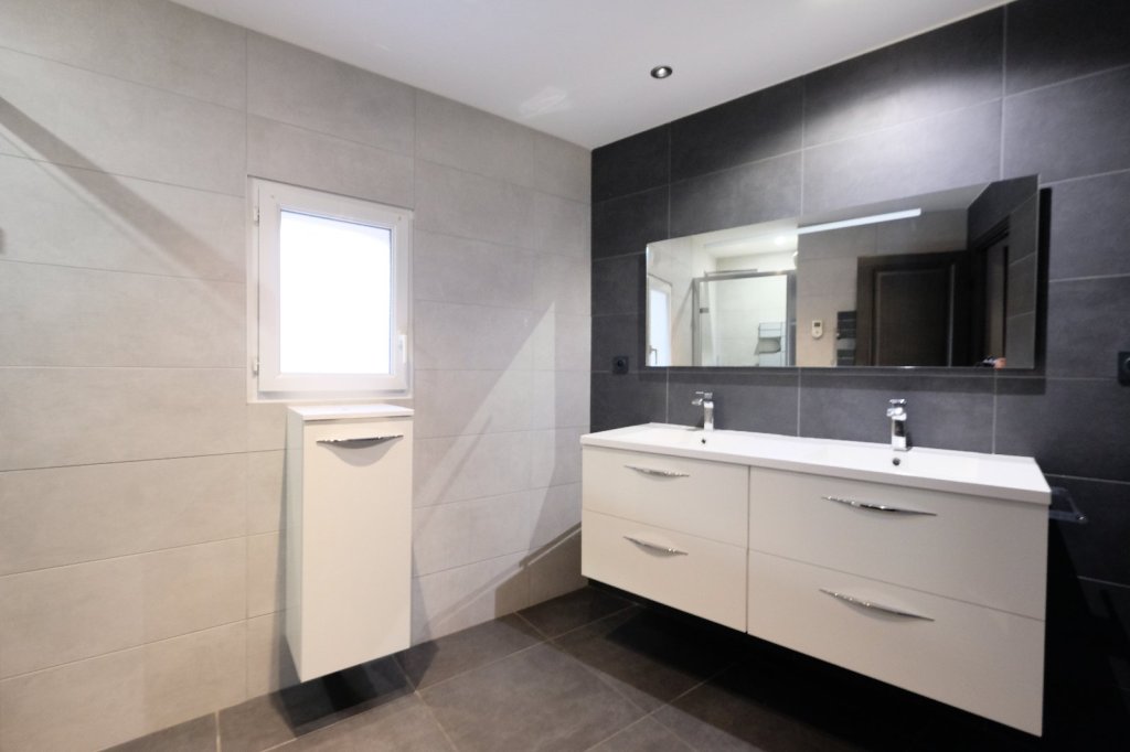 À l'étage, la maison dispose de trois chambres spacieuses, toutes dotées de rangements intégrés, ainsi qu'une salle de bains moderne et un second WC. Le sous-sol comprend une buanderie, une cave et un espace supplémentaire pouvant être aménagé en chambre, offrant ainsi de nombreuses possibilités d'aménagement.