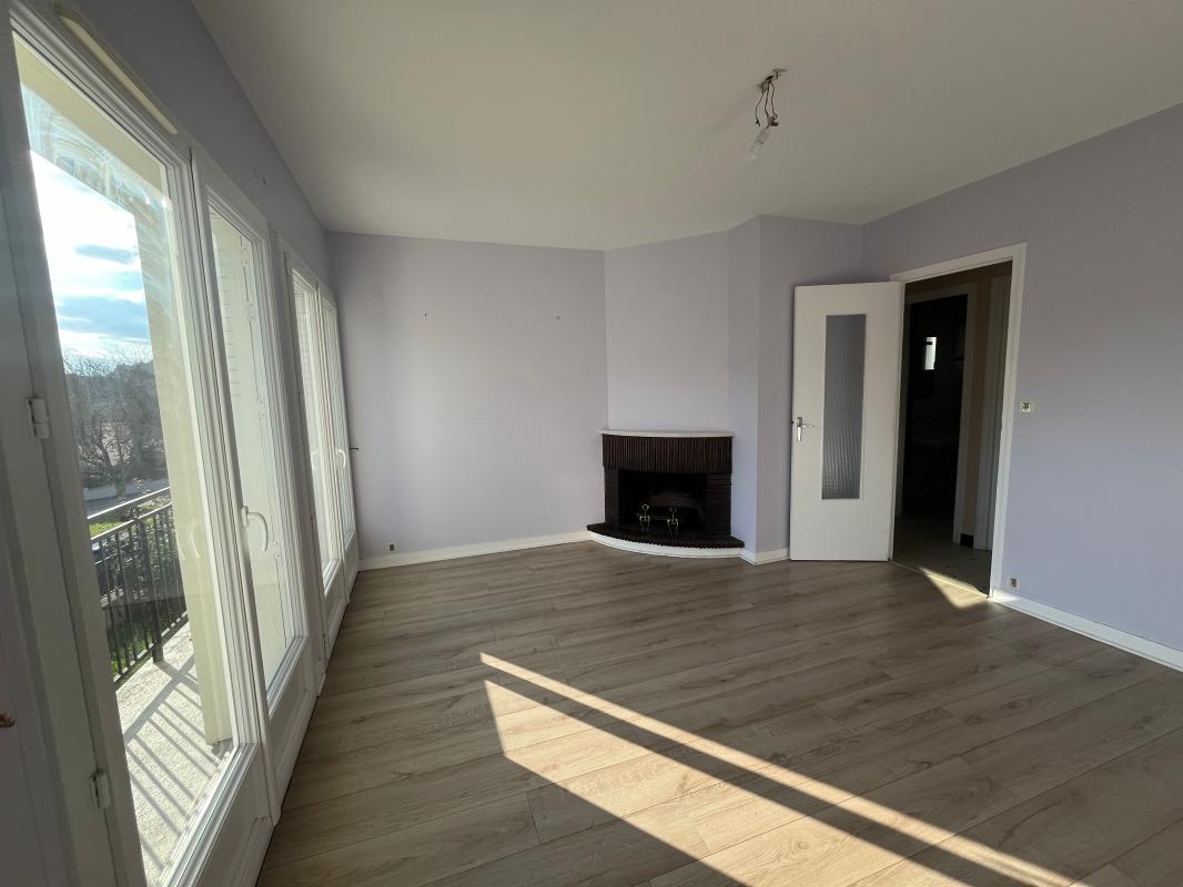 Premier étage : séjour lumineux de 19 m², cuisine indépendante, salle de bains et quatre chambres -- possibilité de réagencement pour optimiser les espaces.