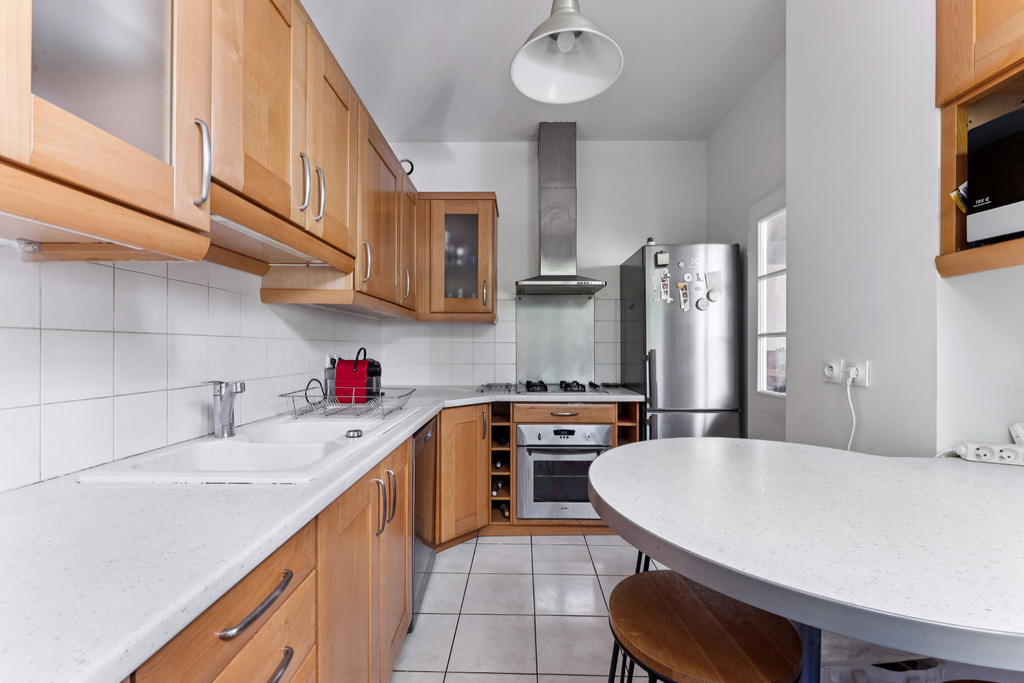 Nichée dans un jardin à l'arrière d'un petit immeuble de très bon standing, à l'abri des regards, cette maison agrémentée d'une terrasse spacieuse de 44 m², parfaite pour des moments de détente en plein air, ainsi que d'un jardin verdoyant et d'un patio charmant,