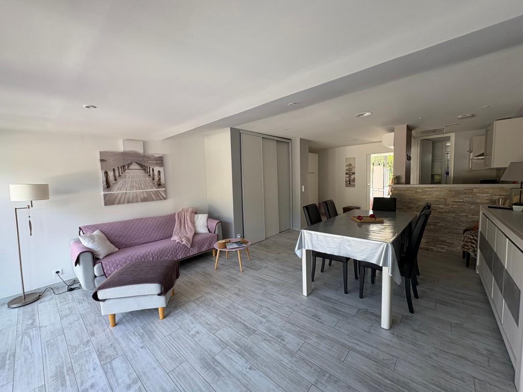 À moins de 5 minutes à pied de la plage des bourdaines, au calme d'une impasse et sans vis-à-vis, découvrez cette villa patio entièrement rénovée de plain-pied.