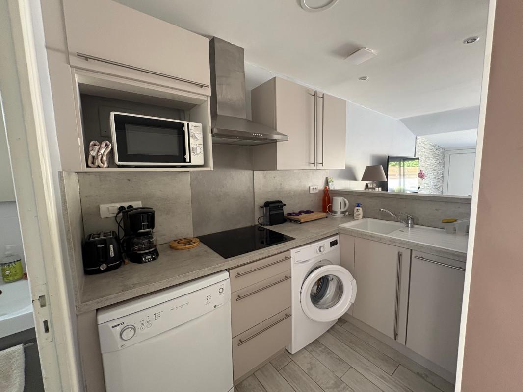 Elle offre une pièce de vie lumineuse, une chambre, une alcôve avec un second couchage, une salle d'eau et une cuisine moderne. Isolation refaite, toiture et baie vitrée récente, store électrique... aucun travaux à prévoir.