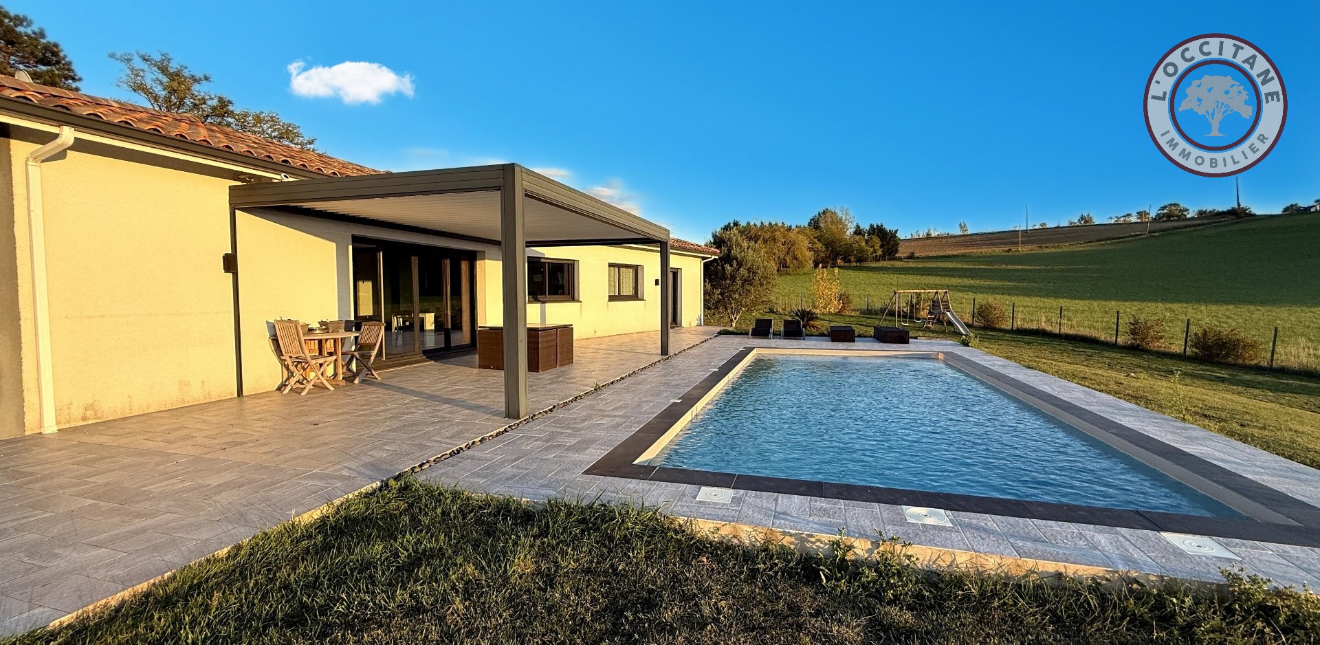 La maison propose également une vaste terrasse avec pergola climatique, une seconde terrasse couverte pouvant être aménagée en cuisine d'été, une superbe piscine et une belle vue sur la campagne,au calme, à proximité de la voie rapide et non loin du centre ville !