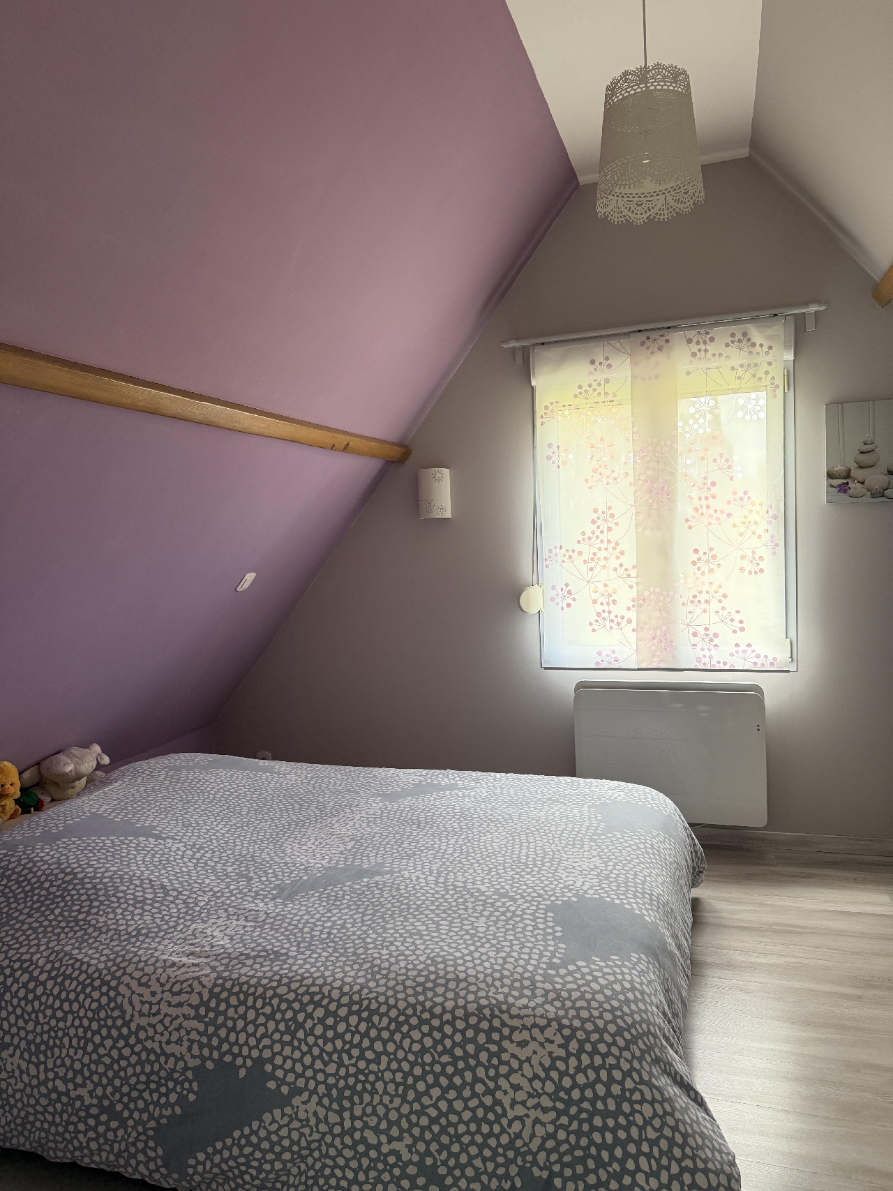 Entrée ouverte sur cuisine aménégée et équipée, séjour salon avec insert à granulés, wc, cajibi. Etage : couloir desservant chambre, salle de bains complète-wc, mezzanine, chambre. Chauffage électrique et poele à granulés. Garage attenant. Chalet à l'écart. Abris de jardin. Cave attenante. Terrain 2675m².