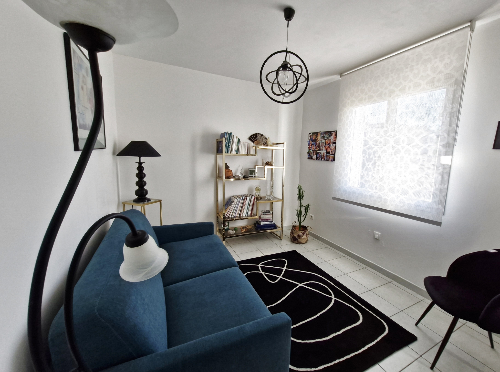 Grande pièce à vivre conviviale avec cuisine équipée ouverte, trois chambres lumineuses, salle d'eau moderne avec douche à l'italienne.