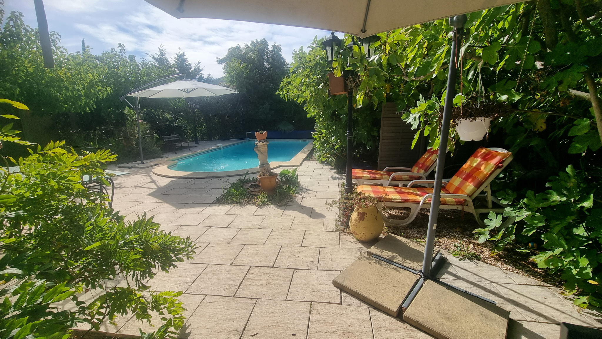 Terrasse avec four à pizza, douche extéreiure et local technique/rangements, Canal de Provence.