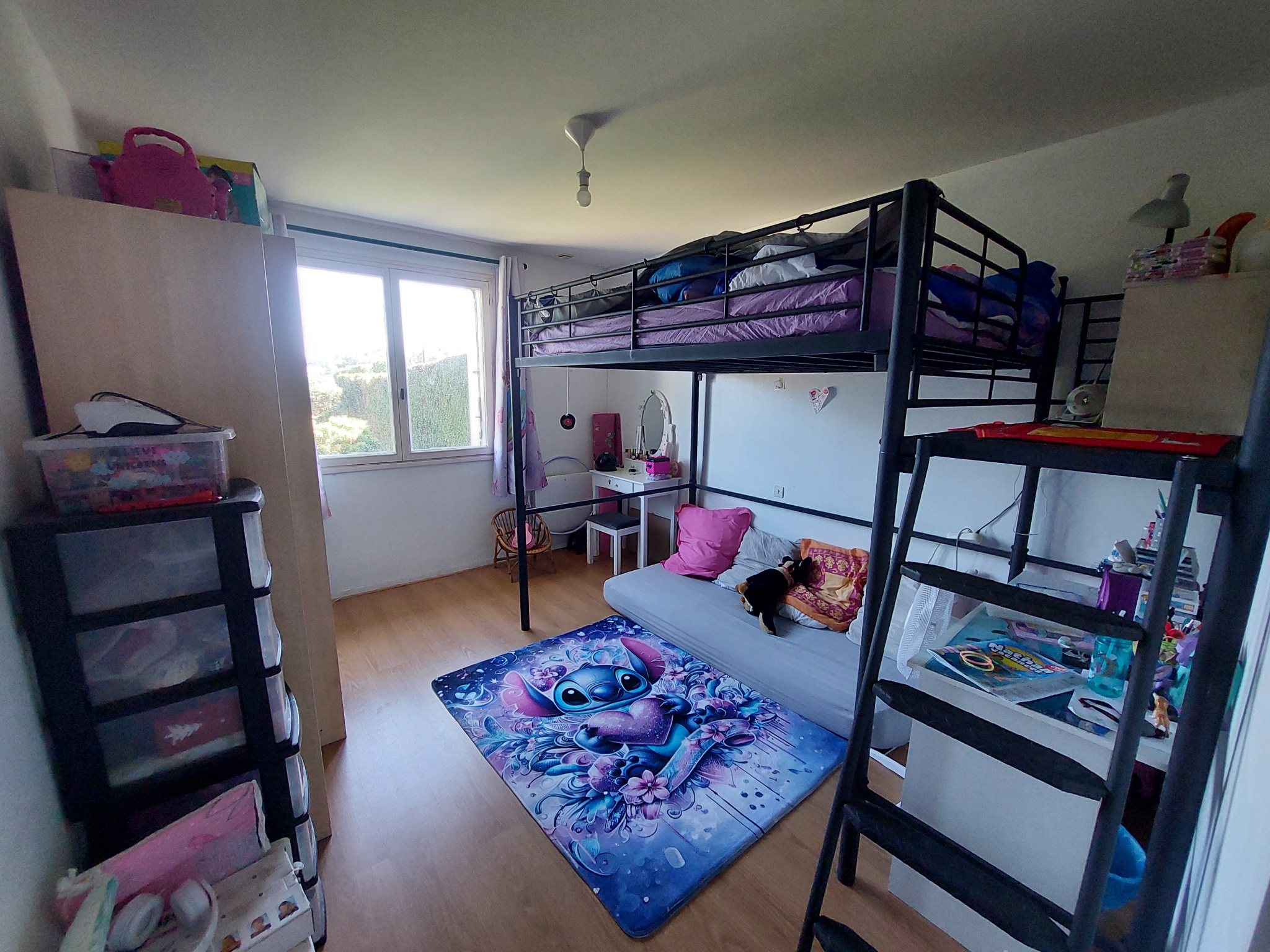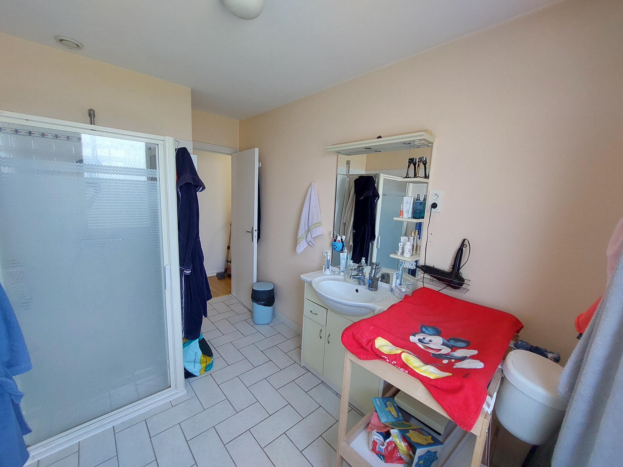 - Au RDC, entrée sur pièce de vie principale salon/séjour, cuisine séparée aménagée et semi-équipée, couloir avec placards, WC avec lave-mains, SDE avec placards et sèche-serviettes, 3 chambres dont 2 avec placards ainsi qu'une autre SDE avec WC. Accès au sous-sol par un escalier.