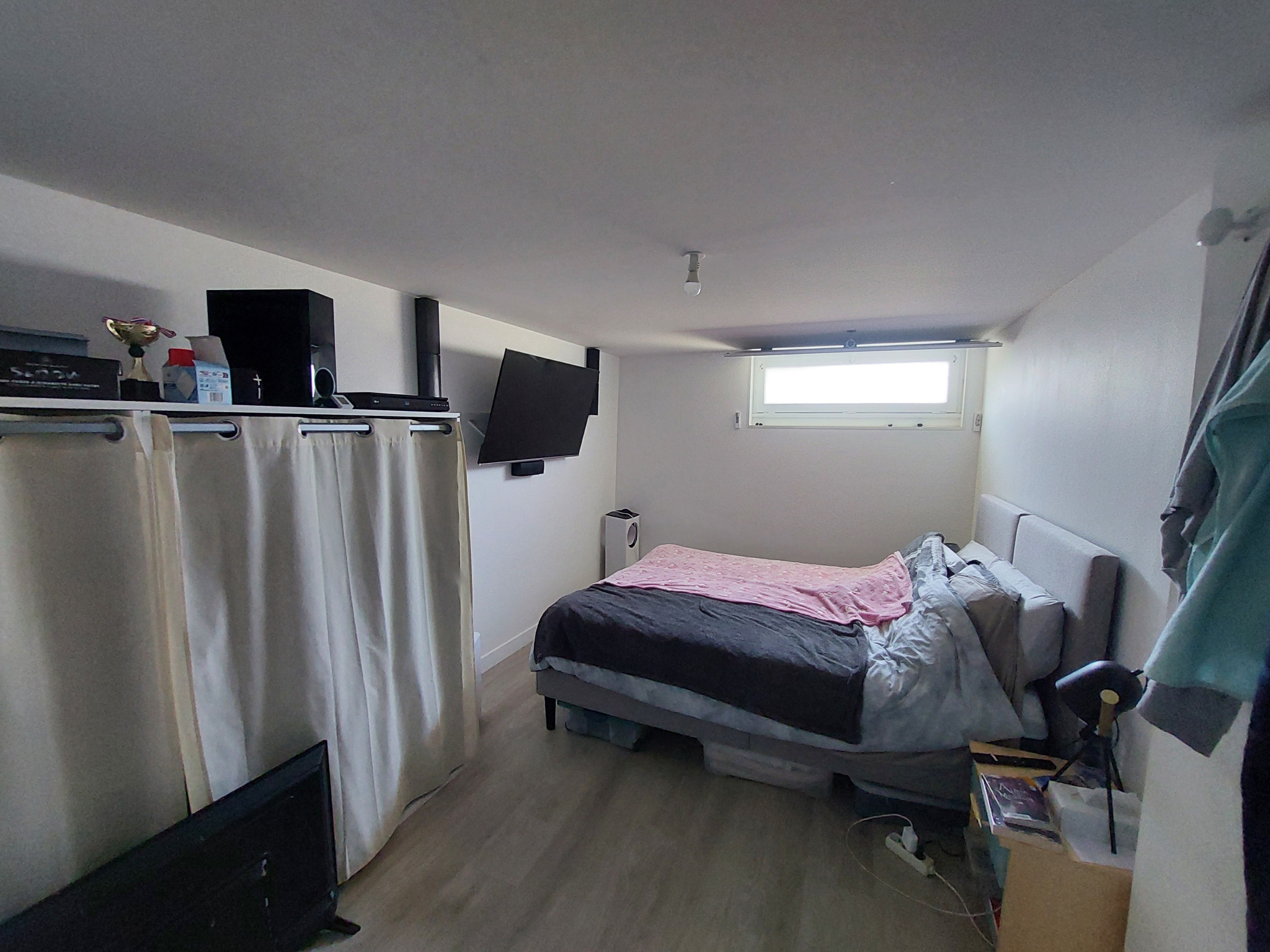 - Au sous-sol, espace lingerie avec ballon d'eau chaude solaire, espace stockage, cave, 2 chambres, WC séparé avec ballon d'eau chaude électrique, grand garage avec porte coulissante manuel.