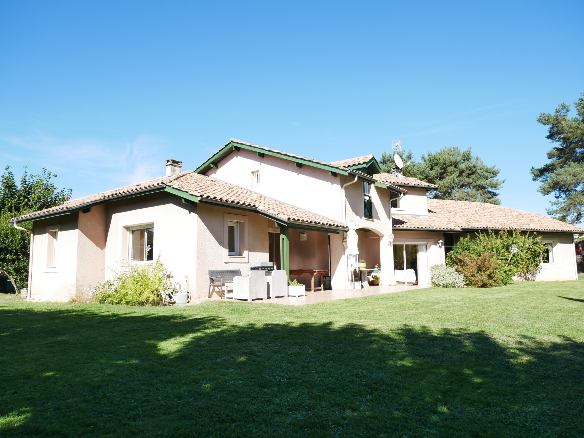 Dans l'un des secteurs résidentiels les plus paisibles de Marmande, cette demeure d'architecte s'inscrit au coeur d'un parc arboré soigneusement paysagé, où l'on profite d'une grande piscine 12 × 6 m avec pool house, d'un puits, d'une cave pour les amateurs de vin, et d'un garage double. L'adresse conjugue discrétion, nature et confort absolu, à proximité du golf de Marmande.