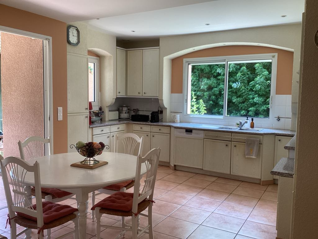 À l'intérieur, les volumes généreux et la lumière traversante structurent des espaces de vie harmonieux. Le séjour de 56 m2 s'ouvre largement sur la terrasse et le jardin, prolongeant la pièce à vivre vers l'extérieur. La cuisine, spacieuse et conviviale, accompagne naturellement cet esprit de réception. Deux suites en rez-de-chaussée, d'environ 25 m2 et 17 m2, assurent indépendance et confort au quotidien. L'étage réunit trois chambres, une salle de bain et un WC, tandis que deux bureaux offrent de véritables espaces dédiés au télétravail ou aux loisirs. Une buanderie fonctionnelle vient compléter l'ensemble, et toutes les chambres disposent de placards intégrés.