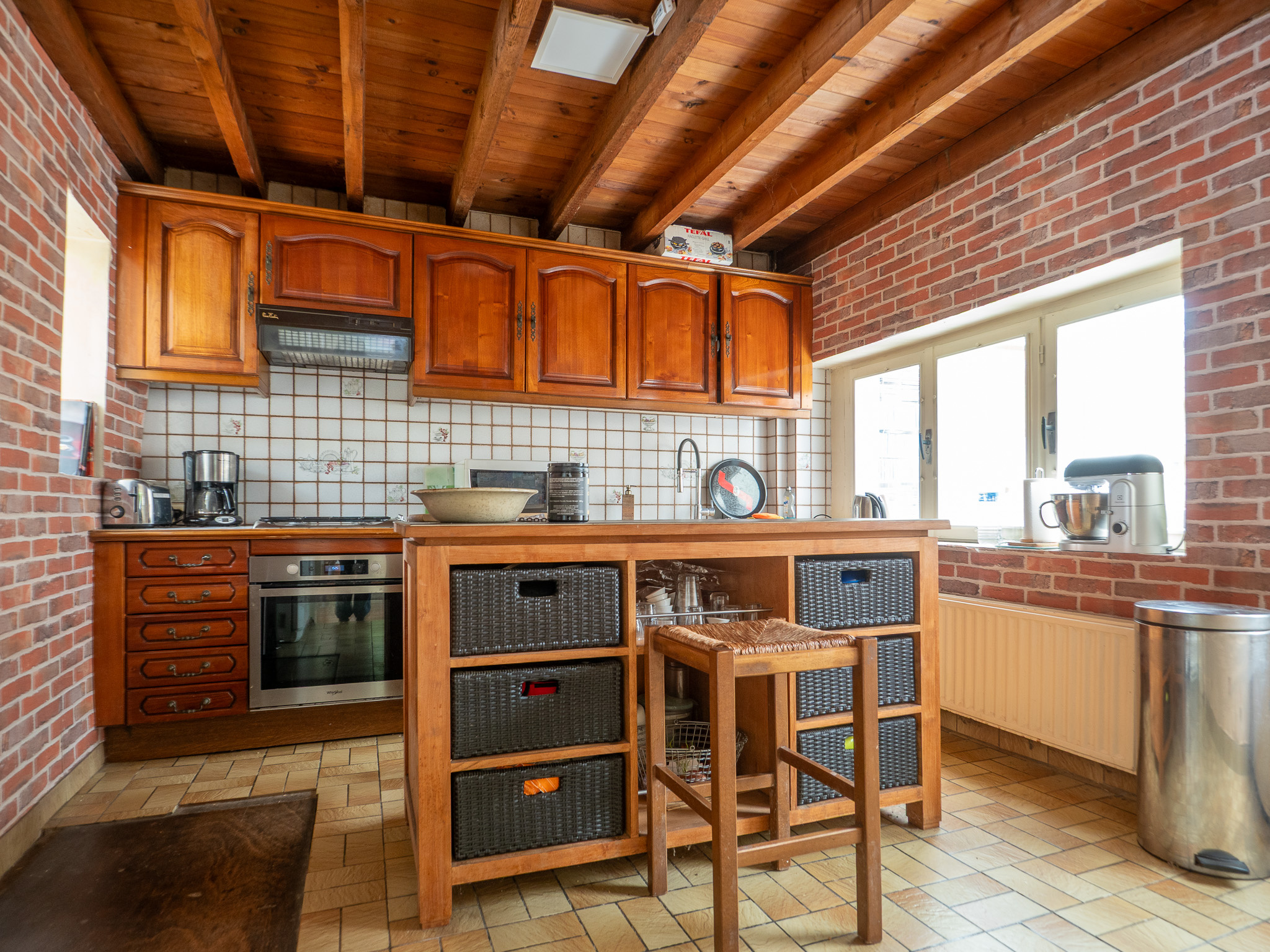 Le séjour parqueté de 40 m2 offre un bel espace de vie, complété par une cuisine équipée fonctionnelle.