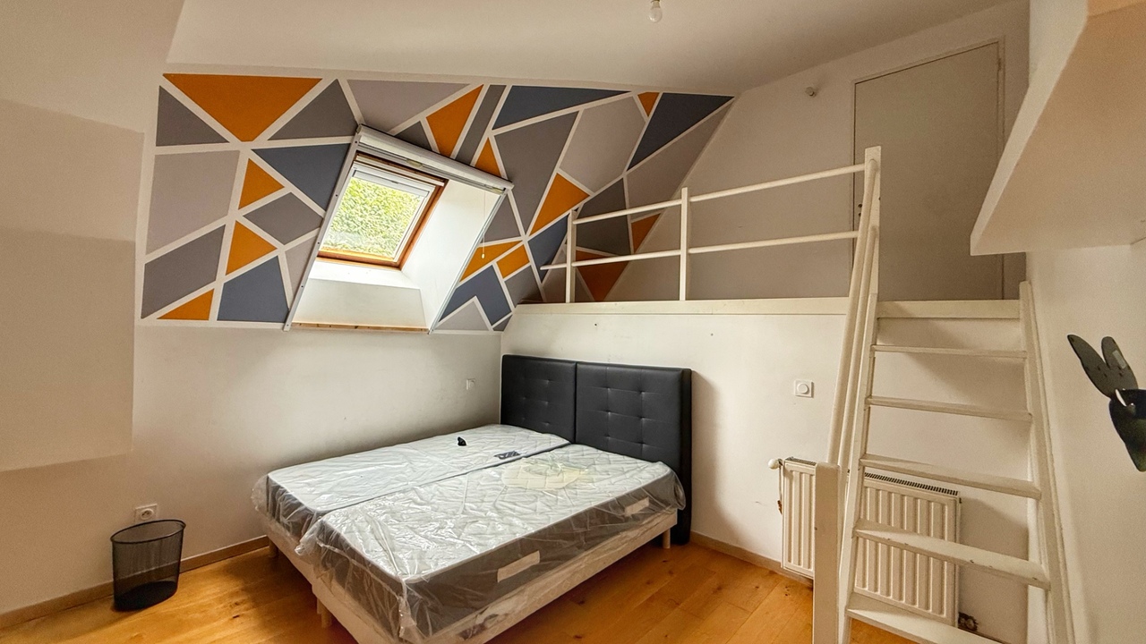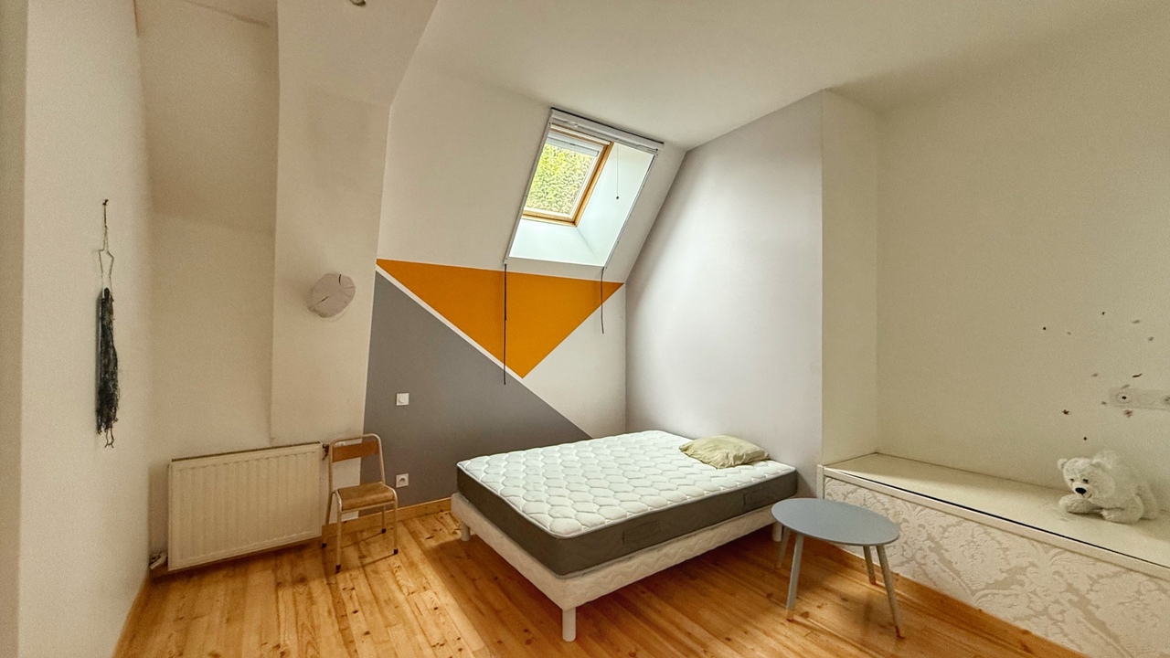 À l’étage, un couloir dessert 3 chambres: 11 m² avec placard-mural et mezzanine de 14 m² (au sol), 12 m² avec placard-mural et mezzanine et 12,70 m² avec placard-mural; une salle de jeux de 20,60 m² avec cellier; une salle d’eau, une SDB et 2 WC indépendants.