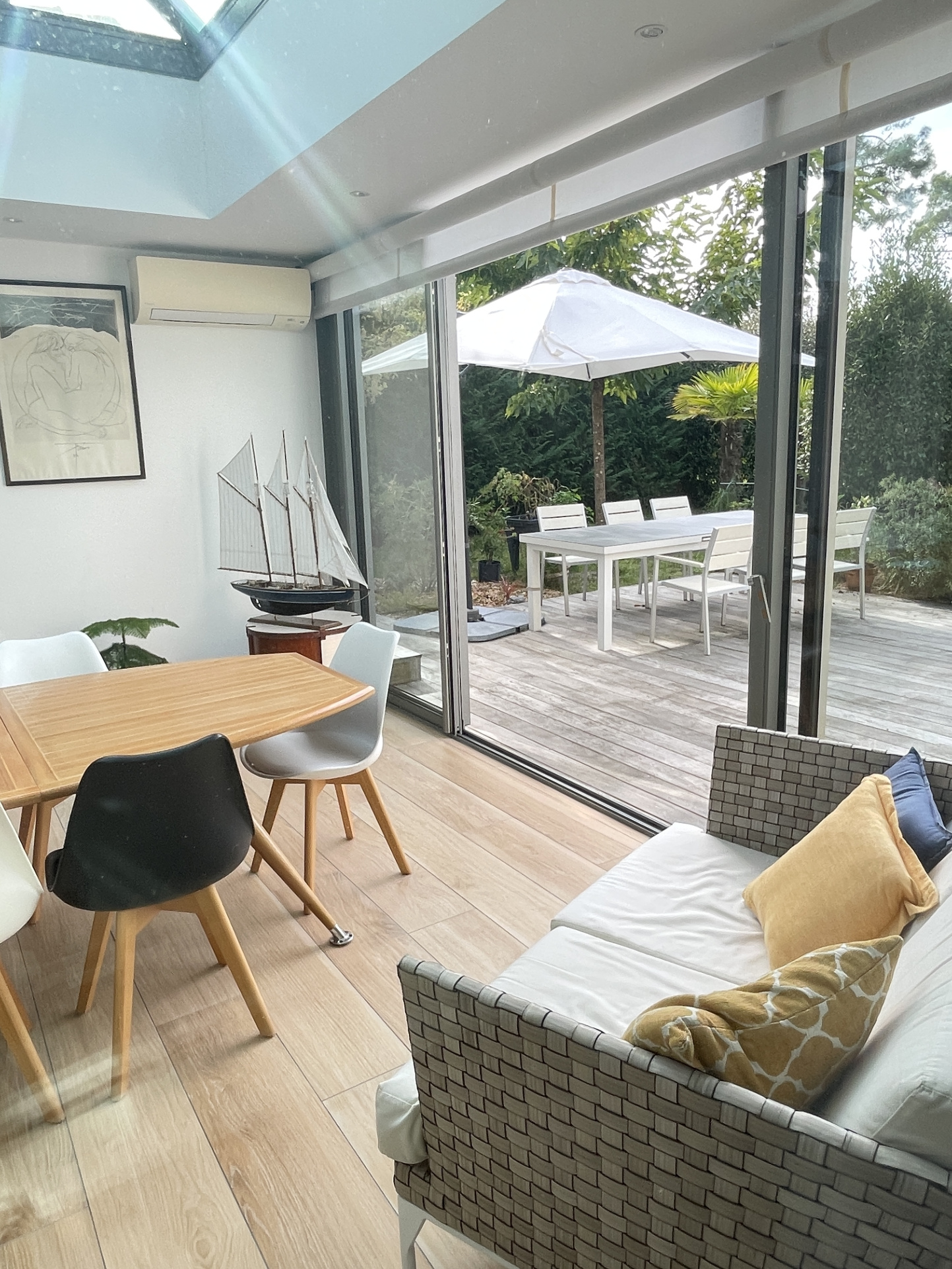 A vendre superbe maison luxueuse de 152 m2, de plain- pied, située à seulement 800 m de la plage SUD et du centre de Lacanau Océan, avec une belle parcelle de terrain.