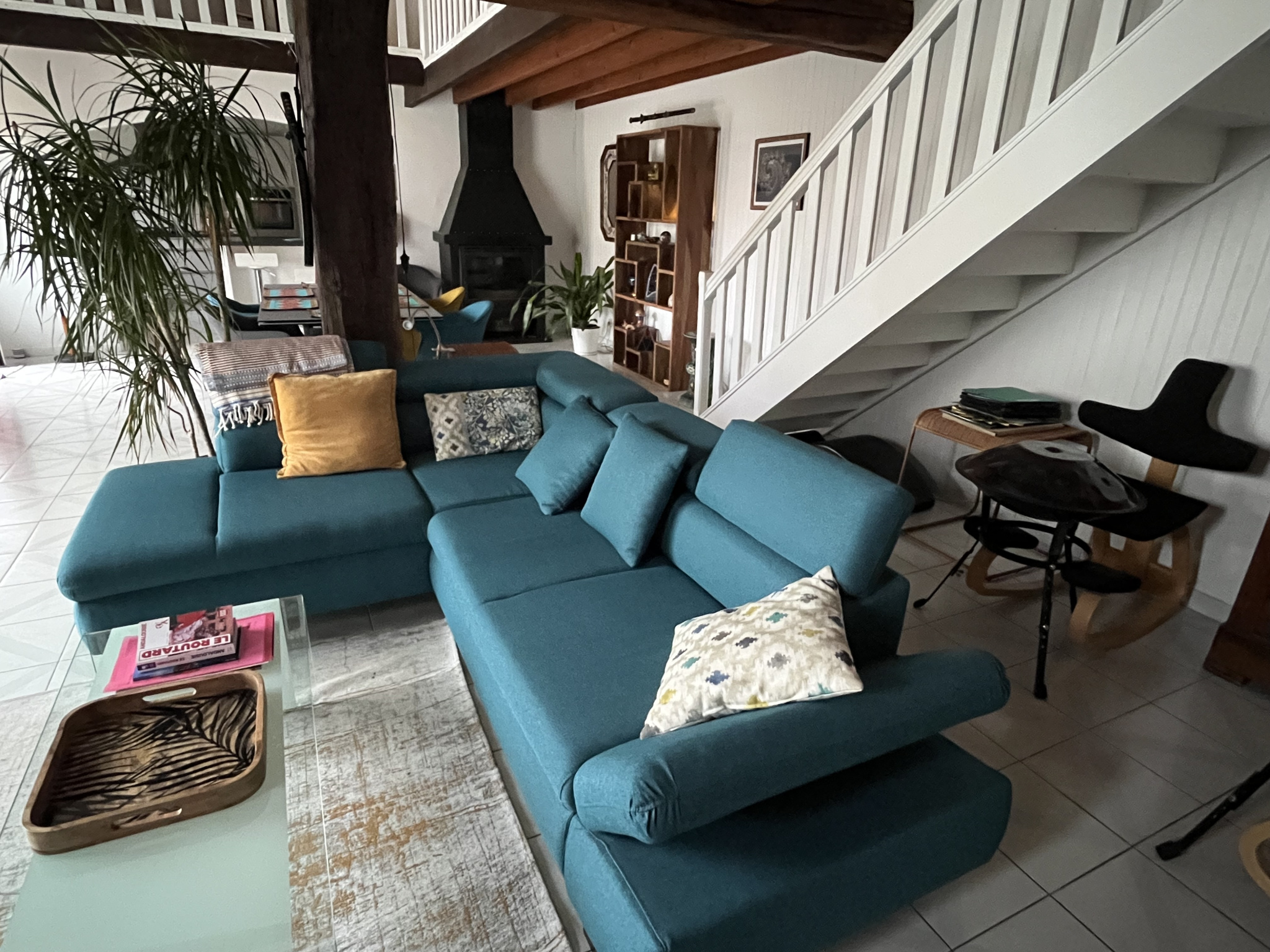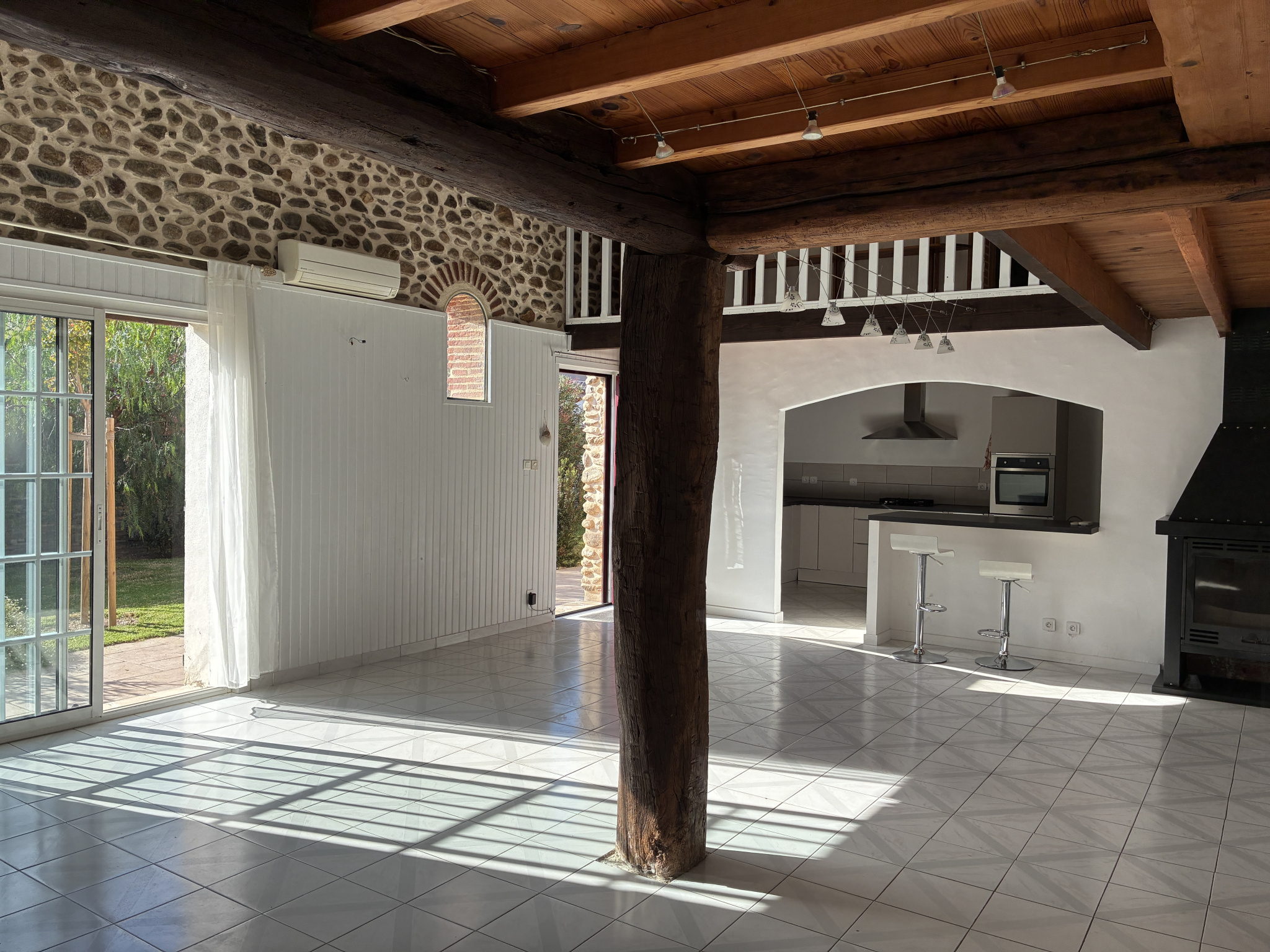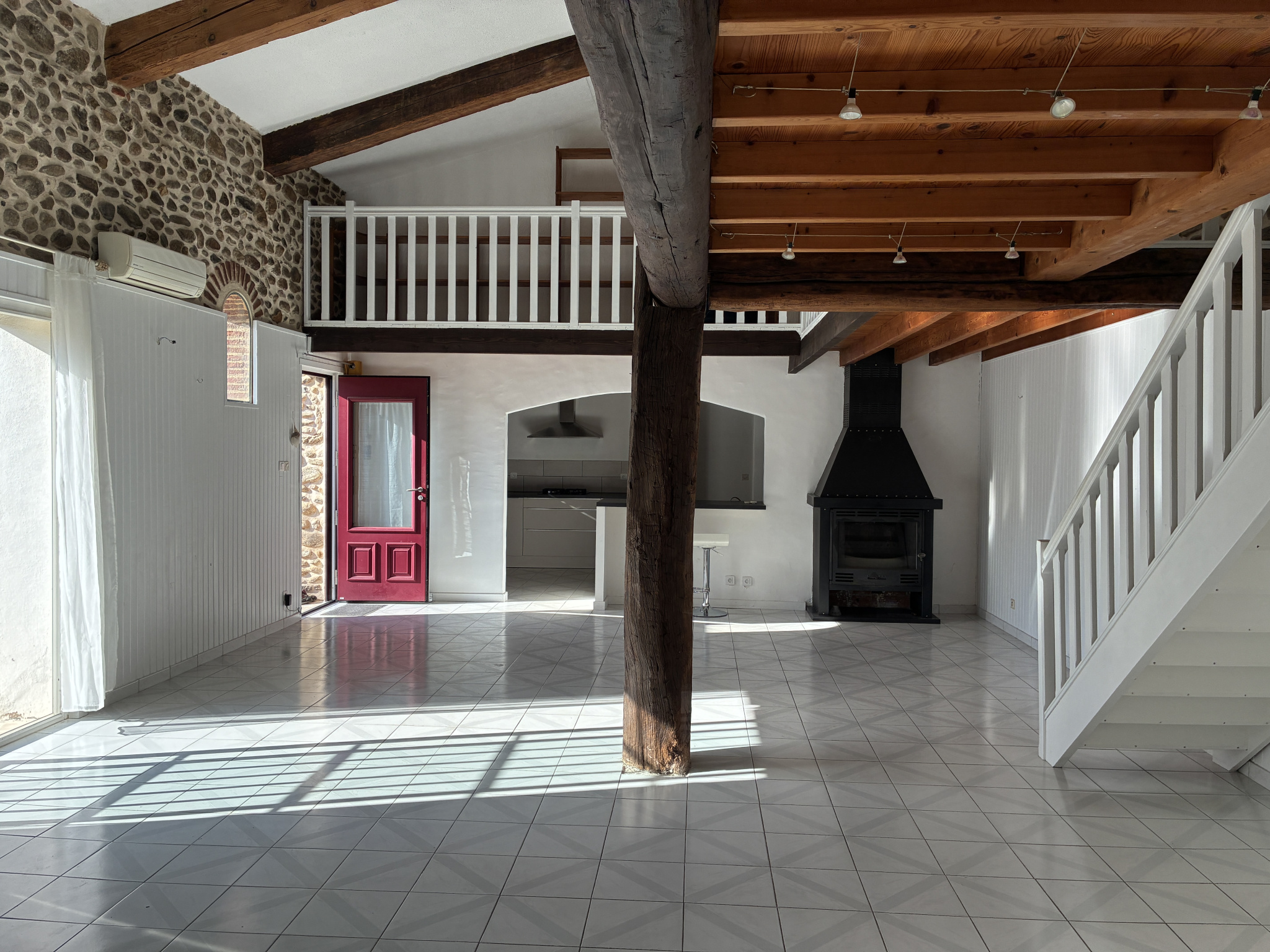 Dès l'entrée, le ton est donné : hauteur sous plafond, mezzanine traversante et vaste pièce de vie de 66 m2 baignée de lumière. La cuisine neuve, esthétique et fonctionnelle, est prolongée d'un cellier.