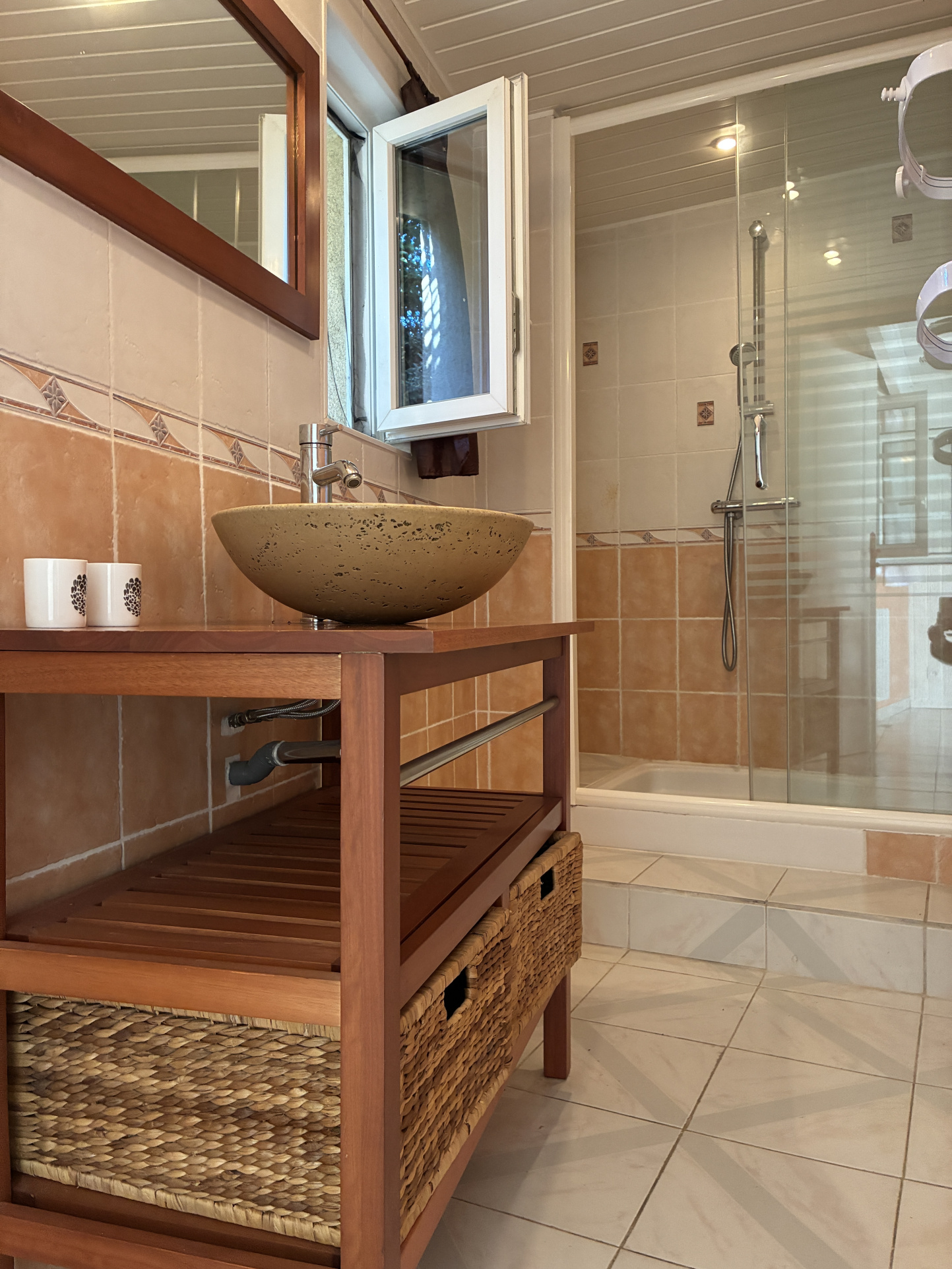 Prestations haut de gamme : huisseries et volets aluminium, parquet massif en chêne, climatisation réversible.