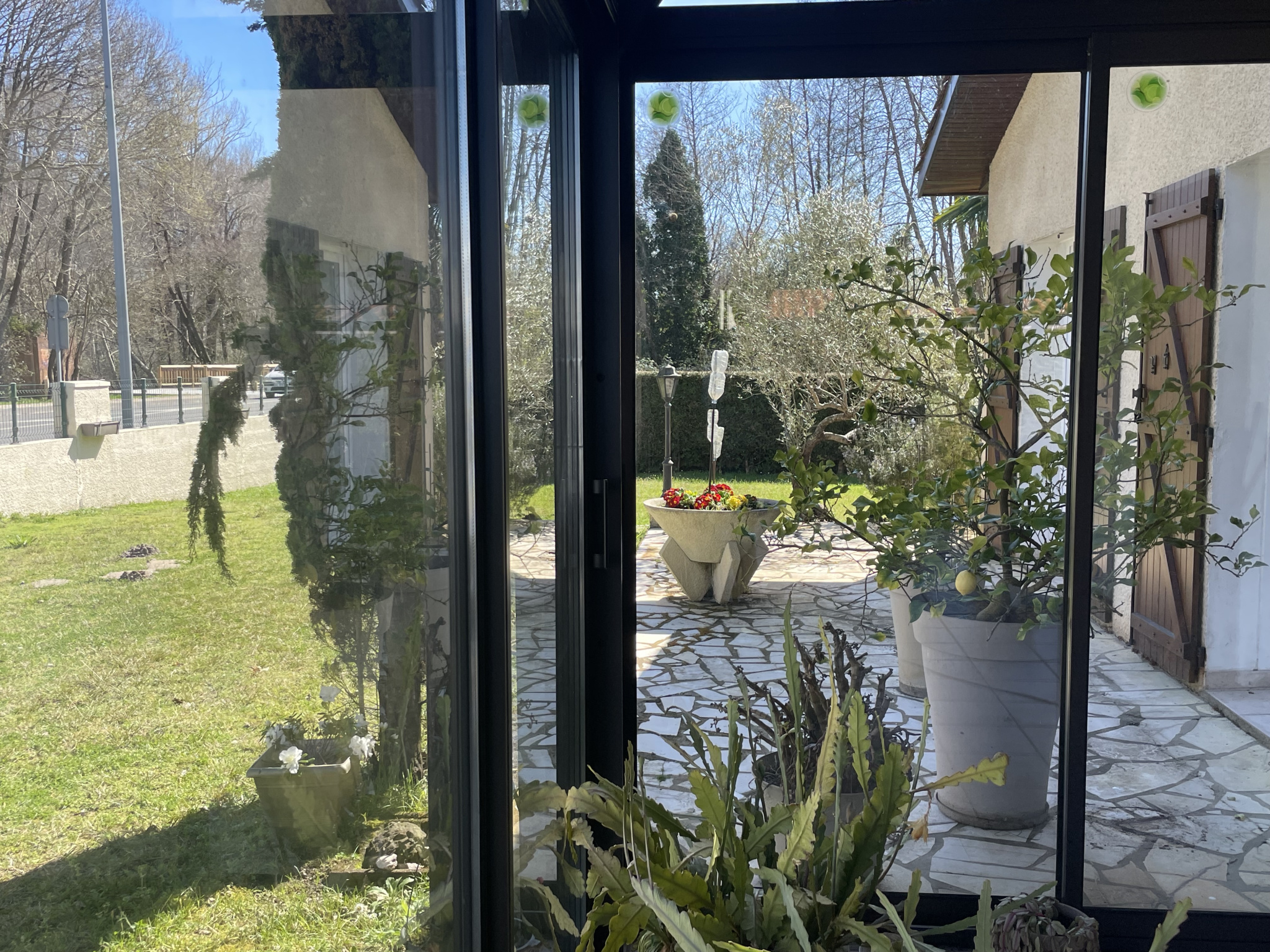 Une véranda sur la façade rue d'une surface de 28 m2 en double vitrage.