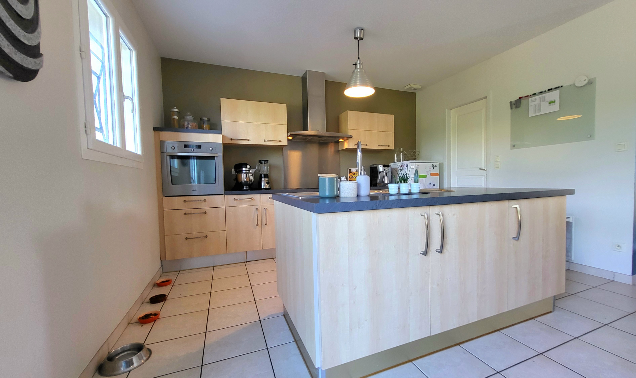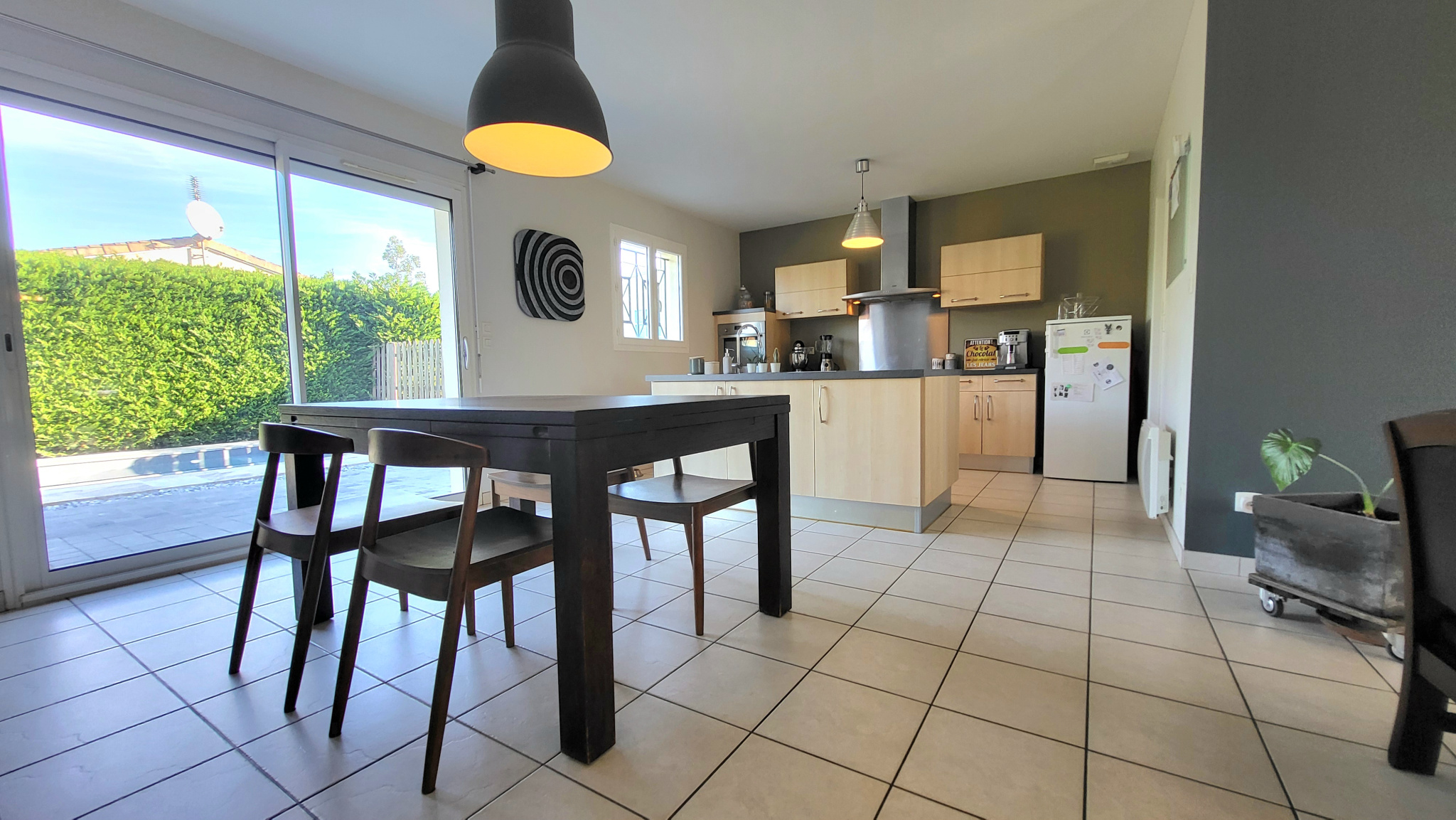 Dès l'entrée, vous serez séduit par la luminosité traversante et la convivialité de la pièce de vie principale, un espace généreux où la cuisine ouverte s'harmonise parfaitement avec le salon-séjour. En prolongement, une pièce attenante vient compléter l'ensemble, idéale pour un bureau ou un espace de jeux, offrant ainsi de multiples possibilités d'aménagement.