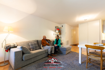 - Un agréable salon-séjour spacieux et lumineux, doté d'un grand canapé. Une porte fenêtre donne accès à un balcon avec une vue panoramique