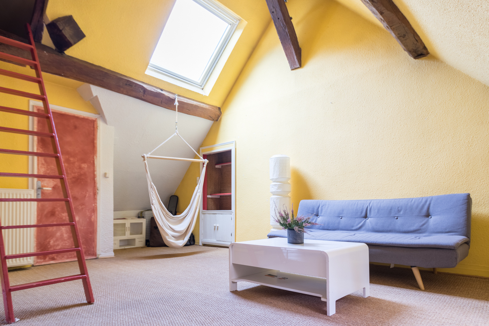 Idéalement placé rue Musette, appartement situé au deuxième et dernier étage comprenant séjour cathédrale avec cuisine ouverte donnant sur un joli extérieur privatif. Chambre séparée ainsi qu'une pièce d'appoint en mezzanine faisant office de bureau ou de deuxième chambre complètent l'ensemble. L'acquisition en sus d'un grand grenier attenant à l'appartement permettrait de transformer celui-ci en T3.