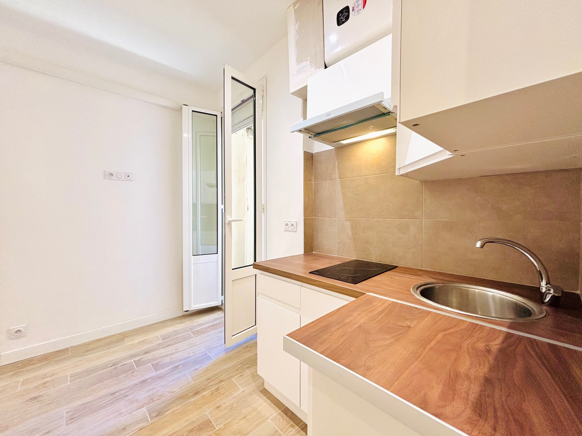 Entièrement rénové, le bien offre de jolies prestations : parquet à bâtons rompus dans la chambre, peinture refaite et belle luminosité.