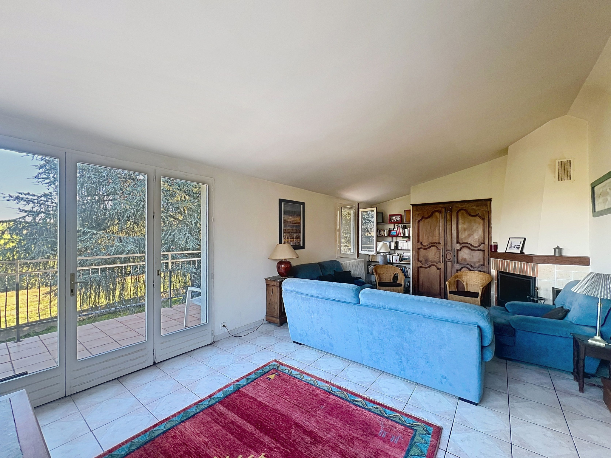 À l'étage principal (131 m2 habitables):Une entrée, Une cuisine indépendante,Un vaste séjour / salle à manger de 60 m2, très lumineux, bénéficiant d'une superbe vue sur les Monts du Lyonnais et donnant accès à la terrasse et au jardin,Trois chambres,Un dressing,une salle de bains.