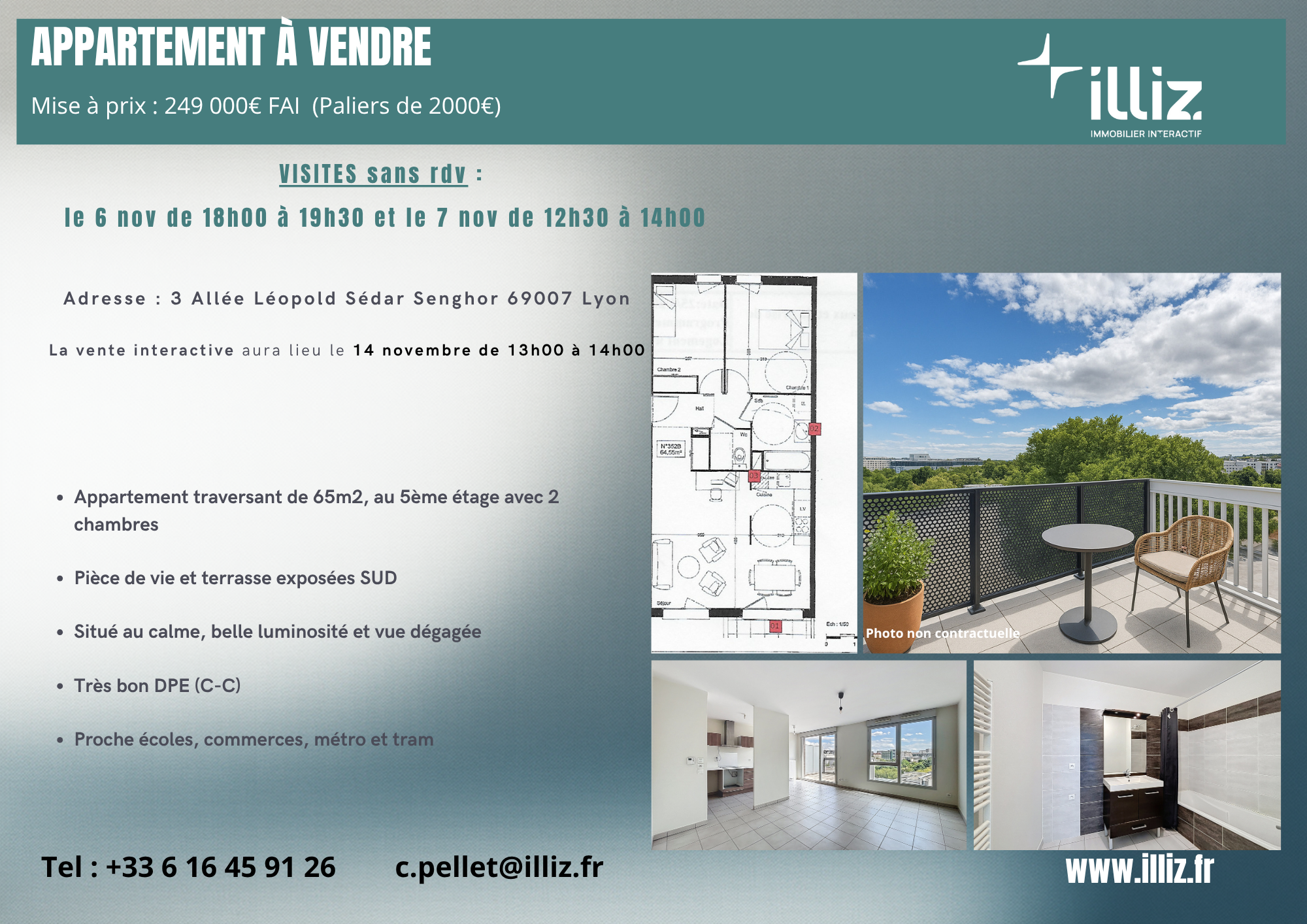 Découvrez ce bel appartement traversant de 65 m2, situé au 5e étage dans un quartier calme du 7e arrondissement de Lyon.