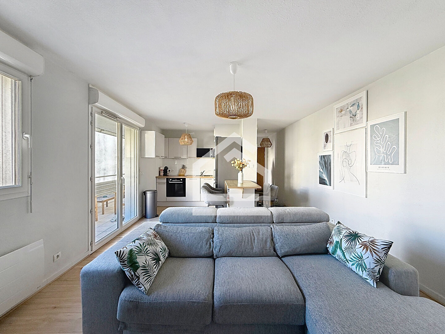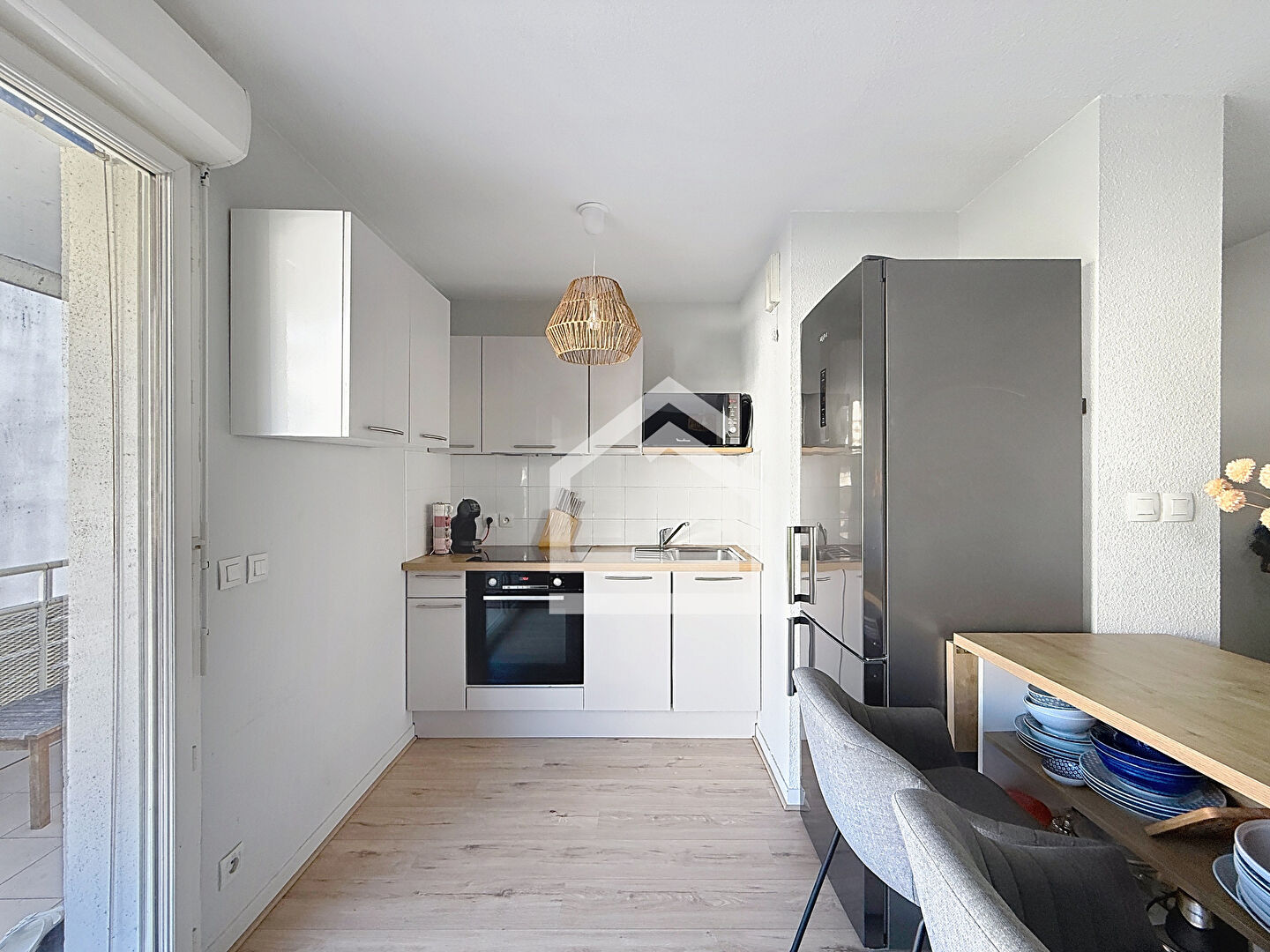 Vous disposez d'une entrée avec placards, d'une pièce de vie avec un accès sur le balcon et d'une cuisine ouverte.