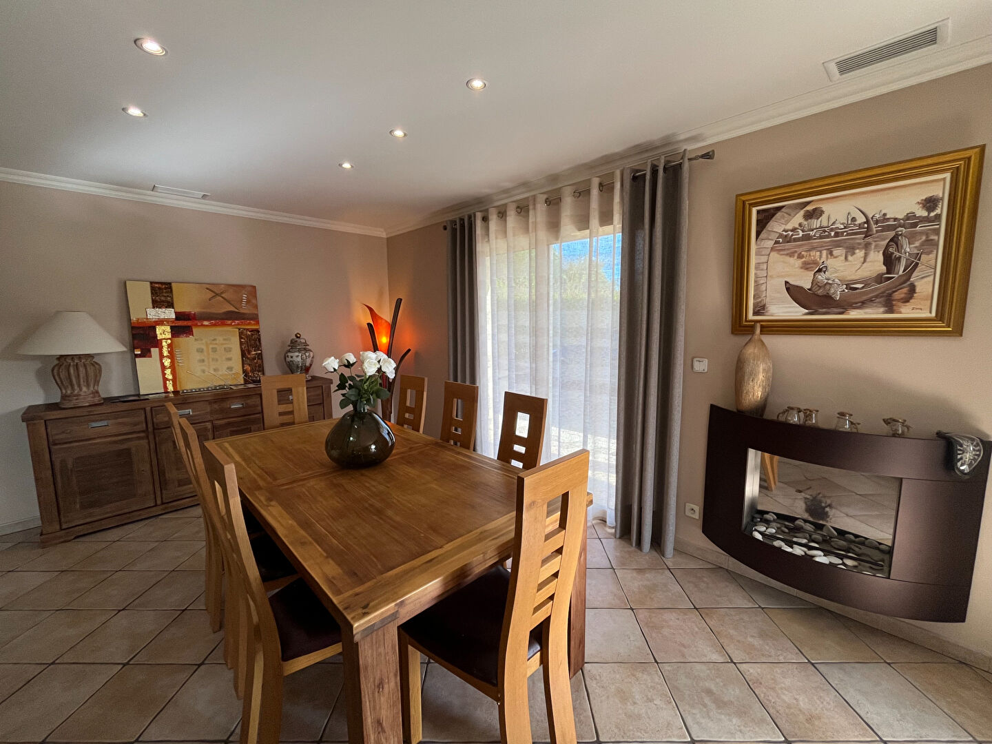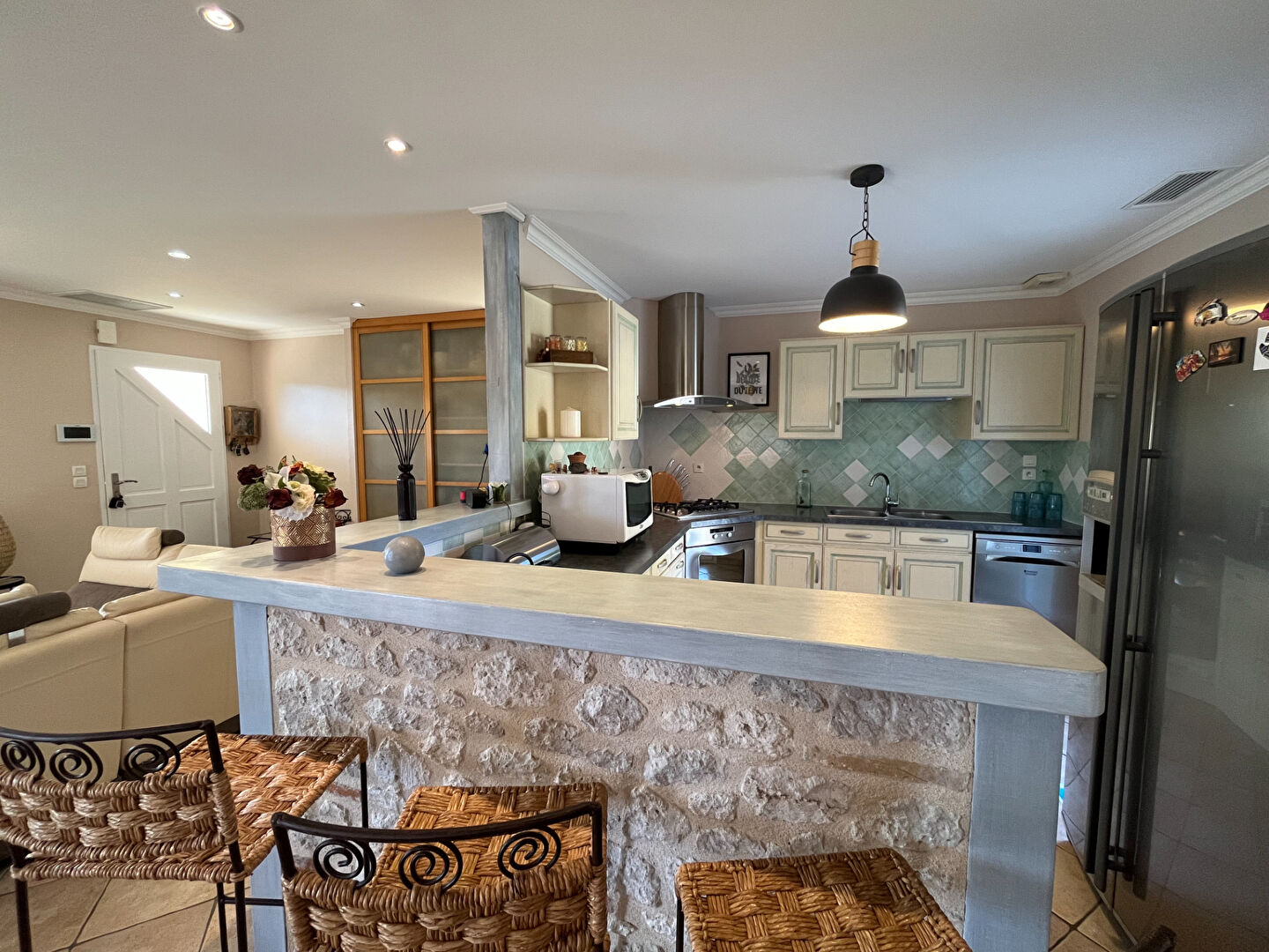 Maison entièrement de plain-pied située dans un cadre agréable sur un terrain arborée et entièrement clos. Très lumineuse, elle se compose d'une entrée avec placard, d'un vaste séjour avec cuisine ouverte et équipée et cheminée bio-éthanol, WC indépendant avec lave-mains, salle d'eau avec douche à l'italienne, trois chambres avec placards intégrés, espace cellier / buanderie et un bureau indépendant avec placard.