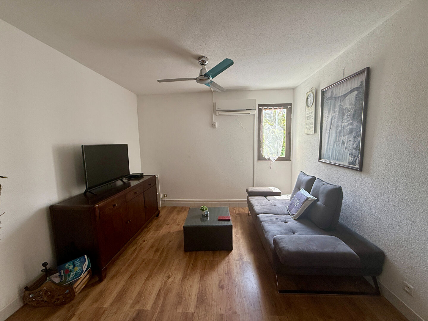 À l'intérieur, je me présente comme un ancien T3 transformé en T2 pour vous offrir un vaste séjour. J'ai aussi une cuisine indépendante, une varangue où savourer vos instants de détente, une chambre avec placard, une salle d'eau, des WC séparés, et bien sûr le confort moderne avec climatisation et brasseurs d'air dans le séjour comme dans la chambre.