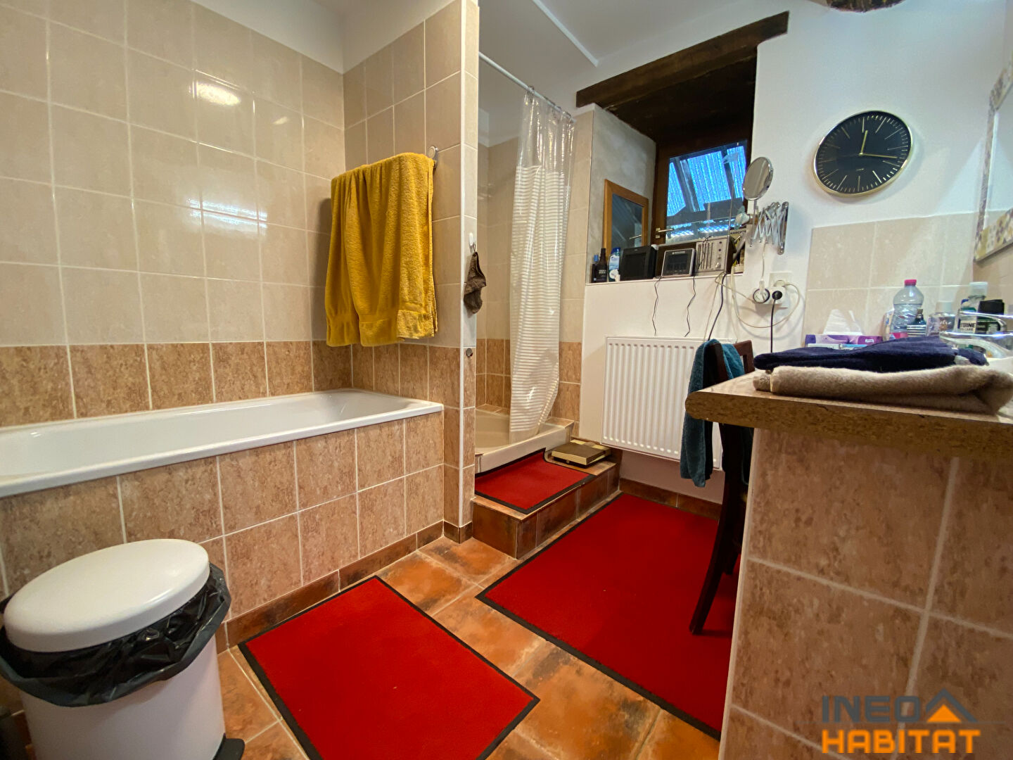 À l'étage, sur un plancher bois d'origine, un palier dessert une première chambre avec placard intégré (plus de 15 m²), une salle d'eau et une seconde grande chambre de plus de 22 m².